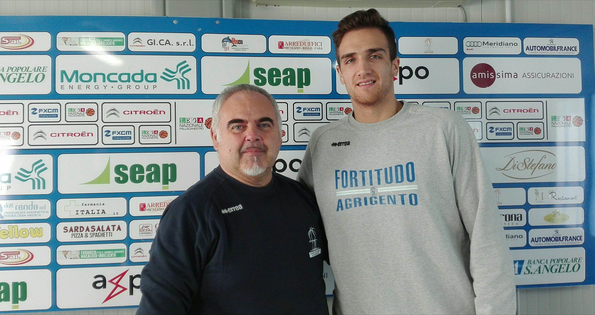 Ciani e De Laurentis in sala sala stampa “G. Micalizio” del PalaMoncada, per presentare la diciannovesima gara del campionato 2016-17 di Serie A2 Citroën – Girone Ovest, che vedrà i biancazzurri impegnati in casa della Benacquista Latina (domenica 29 gennaio, ore 18).