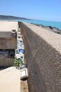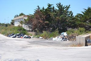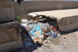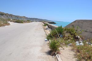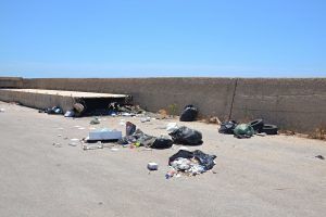 Dovunque sull’asfalto dinnanzi il mare, ci sono cumuli di sacchetti di spazzatura, ma anche cassette di pesce e plastica, mentre topi e animali randagi la fanno da padroni.Una situazione incredibile per un territorio che vuole vivere di turismo, mentre nelle vicinanze continua a persistere il cantiere dell’asse urbano, con la sua strada che precipita nel vuoto, nell’agognata attesa che riprendano i lavori come più spesso inutilmente annunziato.