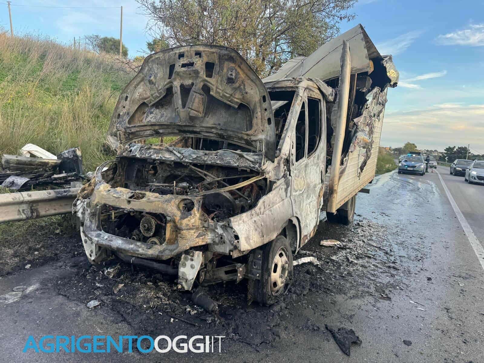 E’ stato in grado di scendere velocemente, mettersi in salvo, e segnalando il pericolo, ha bloccato la circolazione stradale. Scattato l’allarme sul posto sono accorsi i Vigili del fuoco, impegnati nell’opera di spegnimento, e gli agenti della polizia Stradale di Agrigento che si sono occupati della viabilità. Con tutta probabilità, a scatenare il rogo un corto circuito, oppure un guasto meccanico.