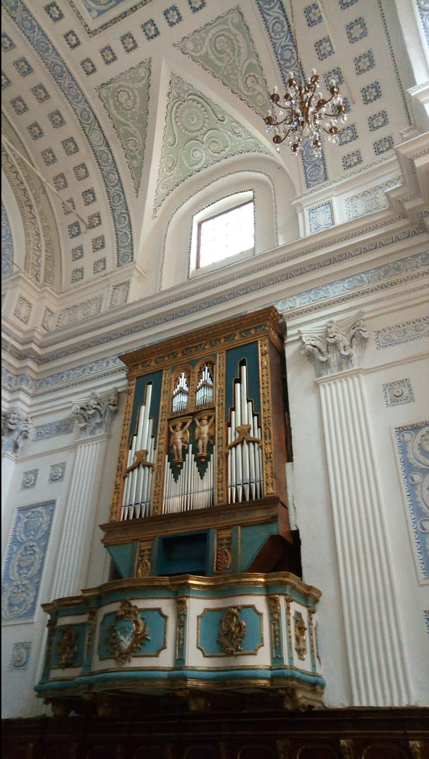 Un dato storico è confermato da un cartiglio applicato in alto al centro del leggio, che ci conferma che lo strumento fu rinnovato da Don Gaspare Franco nel 1775, mentre la cassa armonica mantiene gran parte della struttura in legno e la decorazione cinquecentesca. E’ molto probabile che provenga da un’altra chiesa, considerato che la vecchia Chiesa Madre venne distrutta da un incendio nel 1624.
