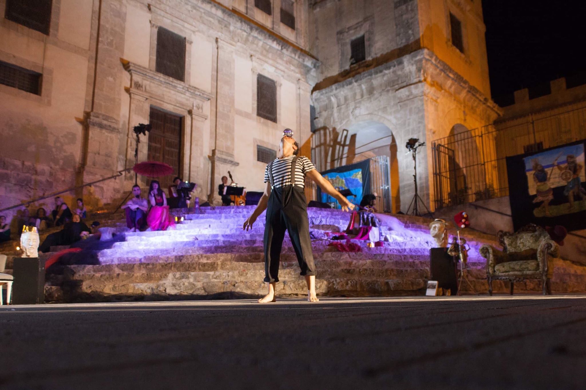 Ogni Essere Umano e di Ogni Collettività Universale. Racconto di una Sicilia ricca di Desiderio di ritorno alla Bellezza e allo Stupore, alla Dignita’ e alla Forza Autentica dell’Individuo. Uno Spettacolo in cui anche il Pubblico ne e’ Protagonista e in cui partecipa attivamente all’Azione Teatrale. La scenografia dello spettacolo sara’ rappresentata, oltre che da elementi scenici, dalle Sculture e dalle Pitture di Rosa Tirrito e Alfredo Bordenca. “Canti, Cuntu e Focu della Sicilia Bella” nasce nel 2015, da un progetto piu’ ampio di spettacolo itinerante, “Girgenti Amuni’”, che prevede un percorso passando in vari punti della citta’ di Agrigento, dalla Cattedrale, fino ad arrivare in fondo Valle dei Templi, al Giardino Kolimbetra, e a cui ha assistito un pubblico proveniente da tutta la Sicilia, e non solo- Nel 2016 viene richiesto in varie parti della Sicilia, e lo spettacolo prende un’altra forma, prendendo il nome di “Canti, Cuntu e Focu della Sicilia Bella”. Lo spettacolo è stato portato in giro in varie parti della Sicilia con ottimo successo, perche’ e’ uno spettacolo sinergico e di spessore emozionale, sfruttando come scenografia i luoghi storici e sacri, come la suggestiva Basilica Cattedrale di Caltabellotta, sede dei Templari, o come la Chiesa Madre di Siculiana. Grande successo soprattutto ha avuto al “Festival Busher Internazionale” a Catania, svoltosi al Castello Ursino, sezione Teatro. Lo spettacolo e’ stato rappresentato con 2 rotazioni ogni sera, e 3 giorni in sold out. Inoltre “Canti, Cuntu e Focu della Sicilia Bella”, e’ lo spettacolo che ha rappresentato, con enorme plauso, l’Anniversario di “Sicilia in Europa” al Castello di Racconigi in Piemonte. Ultimamente e’ stato messo in scena in versione Short alla Casa della Cooperazione, Bene Confiscato alla Mafia a Palermo, e nella versione medium, dentro la meravigliosa Chiesa di San Pietro ad Agrigento. Nell’estate del 2018 lo spettacolo completo è stato acquistato da CoopCulture per il Parco Archeologico Valle dei Templi ad Agrigento, ed inserito all’interno del Festival d’Autore. Infatti il 12 agosto del 2018 è andato in scena in sold out sotto il suggestivo Tempio di Giunone. Il 6 di luglio del 2019 dopo l’esposizione e la mostra privata di gioielli e diamanti di Dolce&Gabbana, “Canti Cuntu e Focu della Sicilia Bella” inaugura il Salotto della Città del Gattopardo, Palma di Montechiaro, e delle sue piazze vestite di nuovo. Cast: Ilaria Bordenca – Attrice Fabio Gueli – Cantante-Musicista (Chitarrista) Gigi Finestrella – Musicista (Fisarmonica) Mimmo Pontillo – Musicista (Contrabbasso) Mario Vasile – Musicista (Percussioni) Valerio Genovese – Artista Circense-Fuochista-Trampoliere Sabrina Firmaturi/Rachele Firmaturi – Artisti Circensi-Fuochista Fabrizio Campo/Virgilio Rattoballi – Artisti Circensi – Contact-Giocoliere-Trampoliere-Acrobata Sculture e Pitture di Rosa Tirrito e Alfredo Bordenca L’Associazione Artistico-Socio-Culturale OpenSpace Theater, nasce nel 2013, ma ha un’esperienza dei soci di quasi 40 anni, ha sede ad Agrigento. L‘OpenSpace Theater di cui Ilaria Bordenca (psicologo, psicologo scolastico, danzamovimentoterapeuta, attrice-danzatrice, operatrice culturale) nata e cresciuta a Roma, figlia d‘artisti siciliani, è il direttore artistico, organizzativo e creativo, è Centro Polivalente delle Arti, all’interno si trova un Teatro Off e una Galleria d’Arte, contenitore, negli anni, di Laboratori Teatrali con Recitazione, Dizione, Espressione Corporea, Canto, Mimo, Teatro-Danza, Corso di Canto Moderno, sede di Stage e Workshop di Fotografia, Architettura, Teatro, Canto, Danza, ecc…, sede di Vernissage, Happening, Spettacoli e Rassegne Musicali, Teatrali, Cinematografiche, Area DanzamovimentoTerapia Integrata, Musicoterapia, Artiterapia, indirizzari a vari tipi di utenze: Aduti, Ragazzi, Bambini e Diversamente Abili. Sopratutto oggi l’OpenSpace Theater e‘ un’associazione socio-artistico-culturale che si orienta alla produzione di progetti artistici indipendenti e di denuncia, e allo sviluppo di ideazione, progettazione e organizzazione di eventi con l’obiettivo della promozione culturale e sociale attraverso l’arte.