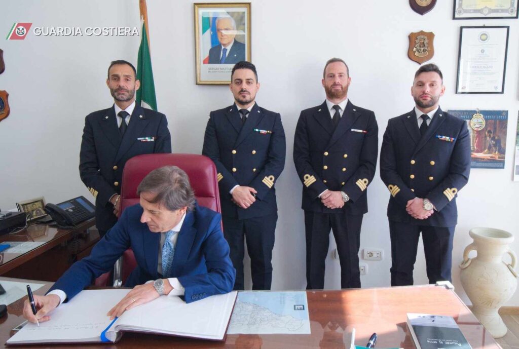 Il prefetto Caccamo ha visitato l’area Comando, la nuova Sala dedicata allo svolgimento delle patenti nautiche e la Sala Operativa, prendendo visione dei sistemi in uso per il monitoraggio del traffico navale e della gestione delle emergenze in mare. La visita si è conclusa con la consegna del crest del Comando e la firma del Diario Storico della Capitaneria, dove il Prefetto si è, tra l’altro, così espresso: ”Questa Istituzione costituisce sicuramente una peculiarità che debba costantemente essere sempre più valorizzata e ciò avviene, senza dubbio alcuno, grazie alla elevata capacità di pronto intervento e di altissima professionalità, caratteristiche assolutamente peculiari di questa Istituzione”.