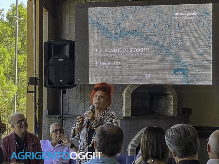 Foto dello scorso anno di Un mare di storie con al centro la scrittrice e filologo classico Silvana Grasso