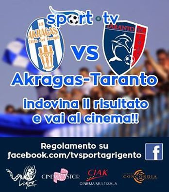 Indovina il risultato di Akragas - Taranto e vinci un biglietto per il Cinema di Agrigento. (Multisala Ciak, Concordia, Astor)...