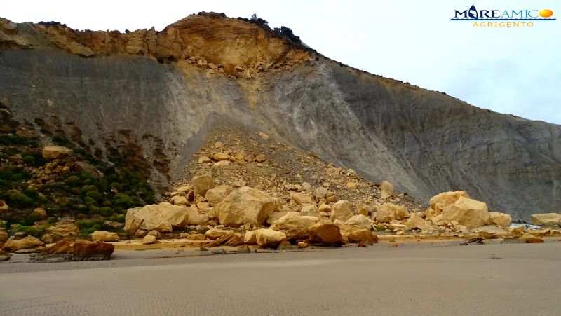 E' crollata parte della collina che incombeva sulla spiaggia di lido Rossello, a Realmonte. Il cedimento poco distante il faro...