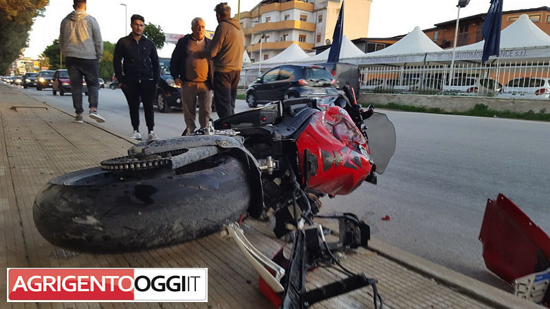 Un brutto incidente nel pomeriggio in via Leonardo Sciascia al Villaggio Mosè, proprio davanti l'ingresso del PalaCongressi . Una moto,...