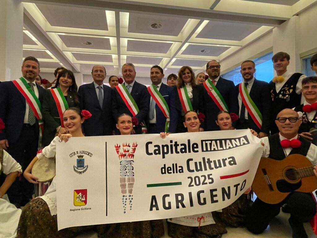 Agrigento capitale della cultura visibile attraverso uno striscione per testimoniare la bellezza della terra di Girgenti ed il suo immenso Patrimonio culturale. Agrigento e la Sicilia diventano il simbolo di promozione culturale e turistica in occasione della festa del patrono d’Italia e il val d’Akragas rappresenta la cerniera tra storia e identità passato e presente. Una vetrina importante per la città di Agrigento, capitale 2025.