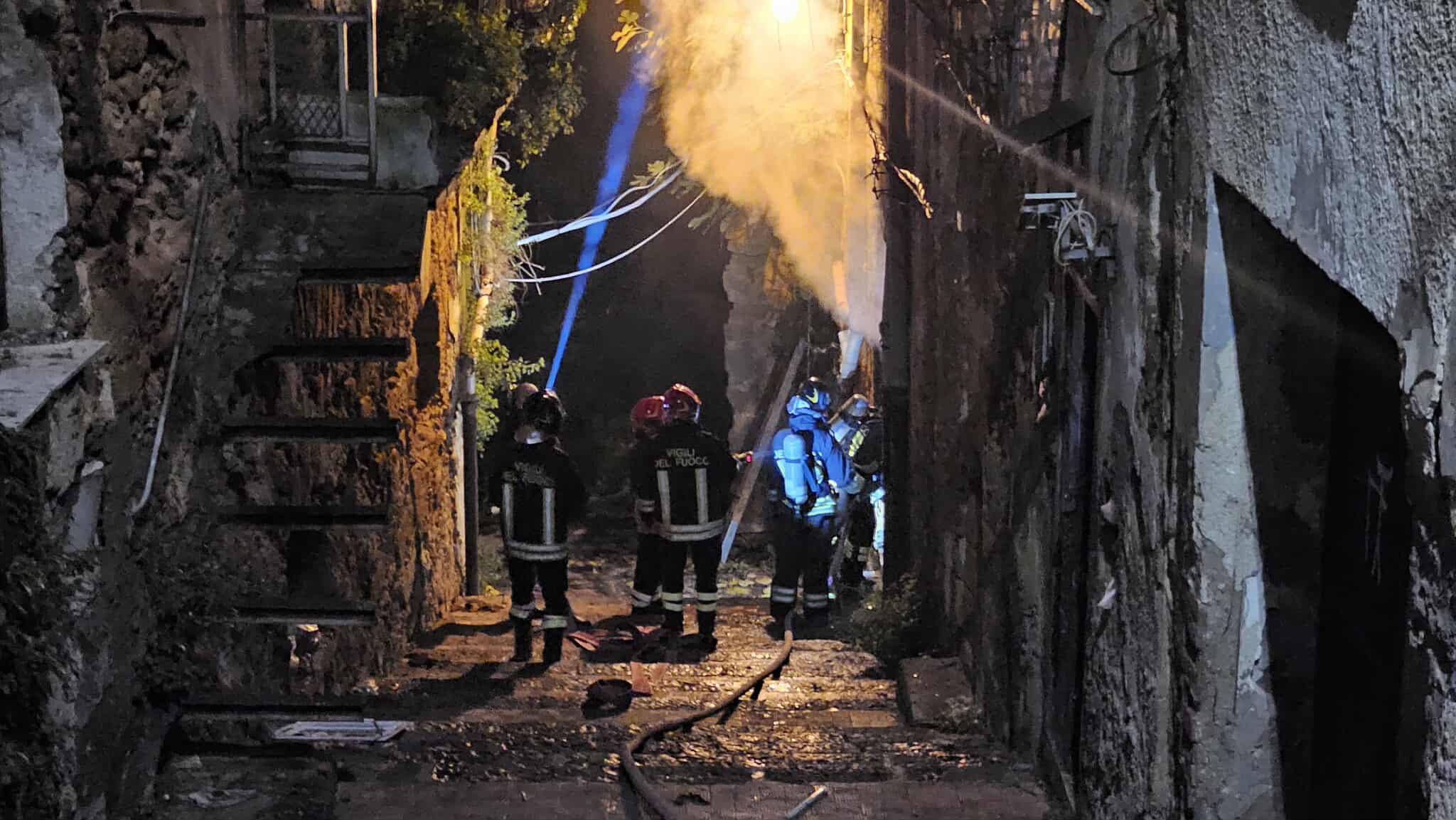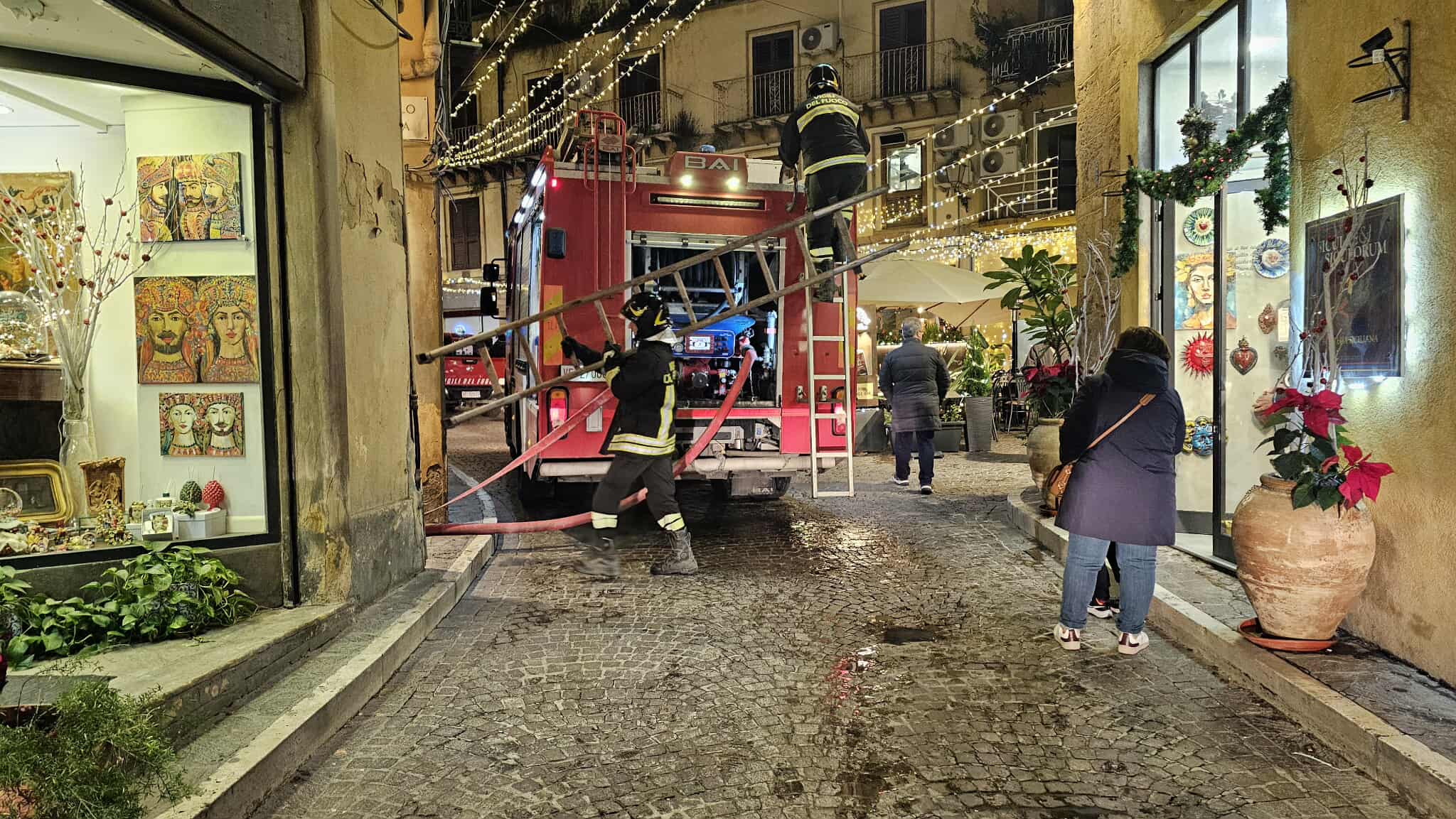 Il rogo ha interessato un immobile al piano terra di uno stabile in Discesa Boccerie, nella parte sottostante del salotto cittadino. L’allarme è scattato nel tardo pomeriggio, mentre via Atenea era affollata di persone impegnate nello shopping natalizio.