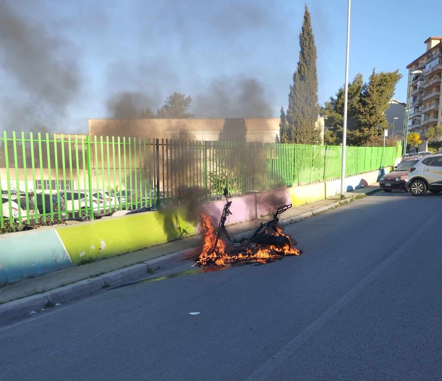 Aveva appena parcheggiato il ciclomotore, quando all’improvviso il mezzo ha preso fuoco. Momenti di panico, questa mattina, davanti la scuola di Fontanelle, dove una squadra dei vigili del fuoco del Comando provinciale di Agrigento è intervenuta per domare le fiamme. Terminate le operazioni di spegnimento i pompieri hanno messo in sicurezza l’intera area. Sul posto anche forze dell’ordine. Il rogo è divampato in maniera accidentalmente. (FOTO AGRIGENTO OGGI)