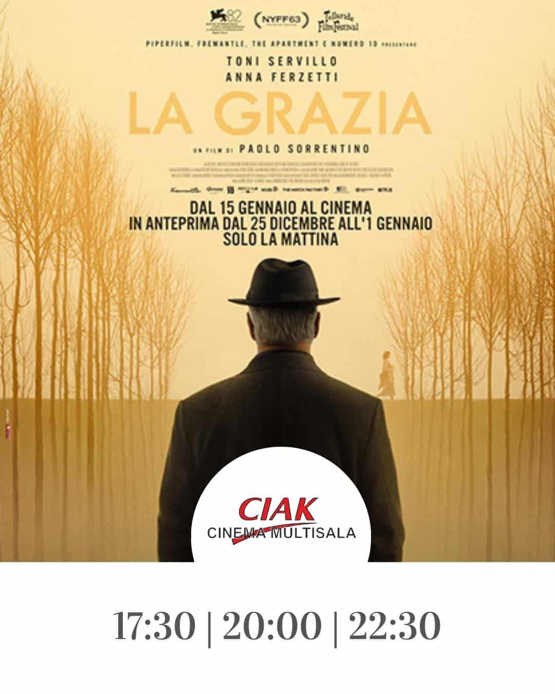 Per gli amanti del cinema d’autore, La Grazia di Paolo Sorrentino, con Toni Servillo e Anna Ferzetti, viene proposto con tre spettacoli giornalieri alle 17.30, 20.00 e 22.30, confermando una programmazione pensata anche per chi predilige il cinema di qualità e la visione serale.