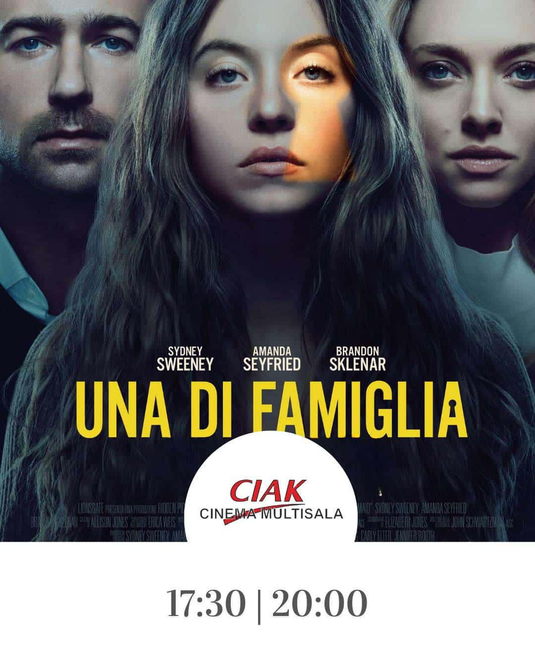 Al Multisala Ciak spazio invece a più titoli e generi. Il thriller Una di famiglia è in programmazione alle 17.30 e alle 20.00, rivolgendosi a un pubblico in cerca di una visione più tesa e introspettiva.