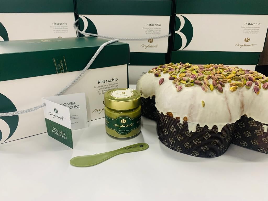 La colomba a lievitazione naturale, con copertura di cioccolato bianco e pistacchi siciliani interi, e un vasetto di crema di pistacchio di Sicilia da spalmare è il frutto della campagna di crowdfunding (finanziamento collettivo) per finanziare un progetto di un pistacchieto di antichi alberi a Canicattì. Questa piccola riserva d’oro verde, nel paese agrigentino, sta prendendo vita grazie al contributo di tanti piccoli sostenitori che hanno scelto di sostenere una specie autoctona di pistacchio fortificando il legame tra la terra e i prodotti dolciari del territorio: dall’appassionato di prodotti siciliani alle PMI fino alla grande multinazionale, la campagna ha saputo coinvolgere target eterogenei fra loro con l’obiettivo di salvaguardare e riscoprire gli antichi sapori del territorio. Dal prossimo anno chi contribuirà potrà vedere i propri pistacchi crescere, a km zero, per un totale di cinque piante acquistate. Al progetto hanno aderito 1.137 sostenitori che hanno contribuito con 64.639 € e nei primi 10 giorni la campagna aveva già raggiunto il budget prefissato di 15.000 € e dopo soli 30 giorni è riuscita a raggiungere l’obiettivo di 64.639 €, con un successo clamoroso. E per continuare a finanziare il progetto per il prossimo anno, si può acquistare la colomba al pistacchio a 27,90 €. I due giovani fratelli della Pasticceria di Canicattì, Vincenzo e Giulio Bonfissuto nel laboratorio immerso tra i pistacchieti, per ingredienti a km zero rispetto alla produzione, 800 mq in aperta campagna, immersi tra vigneti e mandorleti, puntano sempre più all’internazionalità. Per maggiori informazioni ecco dove trovare i dettagli della campagna: