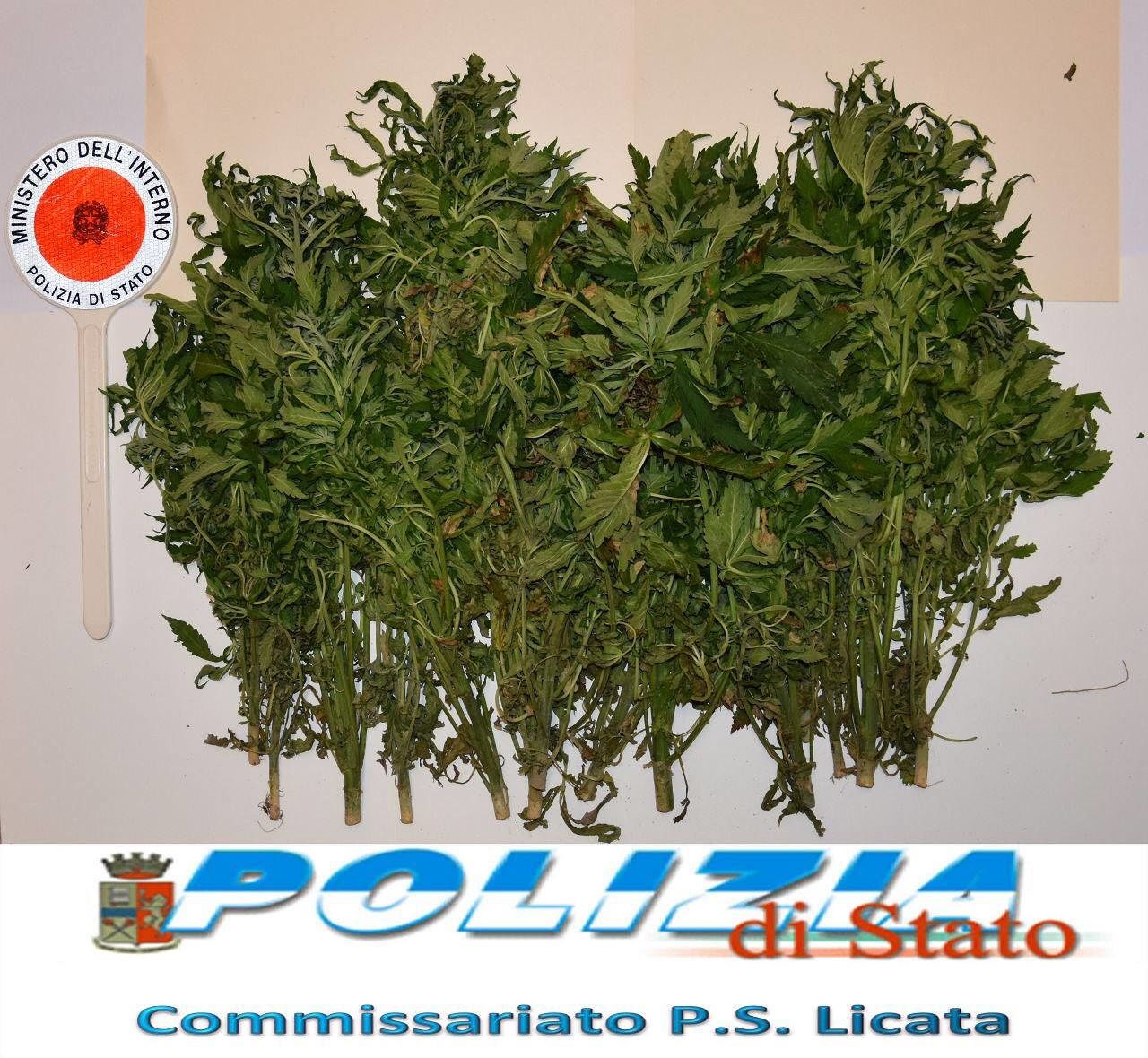 Nella giornata del 17 giugno  nel corso di uno specifico e preordinato servizio, mirato alla prevenzione e repressione di reati in materia di stupefacenti, personale del Commissariato di Polizia di Licata. ha arrestato C.D. licatese 46enne, poiché, in un vasto appezzamento di terreno di sua proprietà ed esclusiva disponibilità, venivano rinvenute nr. 16 piantine verosimilmente della specie botanica del tipo Cannabis India “Marijuana” del peso complessivo al netto di radici di kg.1,8 estirpata forse il giorno prima e riposta tra gli arbusti per la fase di essiccazione. Sul posto si individuava un’area di 200mq ricavata in mezzo ad un canneto mediante l’abbattimento di un notevole numero di canne, già preparata per una più florida coltivazione. Il C.S. come disposto dall’A.G. veniva tratto in arresto in flagranza di reato e messo agli arresti domiciliari presso la propria abitazione.