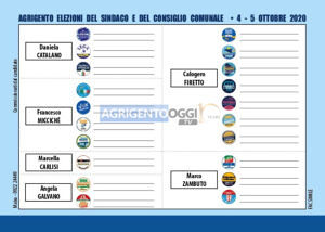 In base al sorteggio quindi Daniela Catalano, sarà la numero uno nella scheda in alto a sinistra, accanto al suo nome, nel riquadro di fianco saranno posizionati i simboli delle liste a sostegno. Ovvero, nell’ordine del sorteggio, Lega, Meloni e La Nuova Agrigento. Al secondo posto Franco Miccichè, che avrà al suo fianco le liste, in ordine di sorteggio, Uniti per la città, Vox, Facciamo squadra e Cambiamo Rotta. Ecco nella scheda Marcella Carlisi che al suo fianco avrà il simbolo del Movimento Cinque Stelle. Angela Galvano sostenuta da Agrigento in movimento e Cento Passi. Calogero Firetto al suo fianco avrà ben sette liste. Nell’ordine del sorteggio si parte da Noi, Onda e poi via via tutte le altre, Agrigento sostenibile, Futura Agrigento, Buongiorno Agrigento, Andiamo avanti, Rinasce Agrigento. In basso a sinistra si posiziona Marco Zambuto, con Forza Italia, Diventerà bellissima ed UDC. In tutto sono 20 le liste in campo. Circa 480 i consiglieri comunali in lista. Tre le liste a sostegno di Daniela Catalano, quattro per Franco Miccichè, una per la Carlisi, due per Angela Galvano, sette per Calogero Firetto, tre per Marco Zambuto.