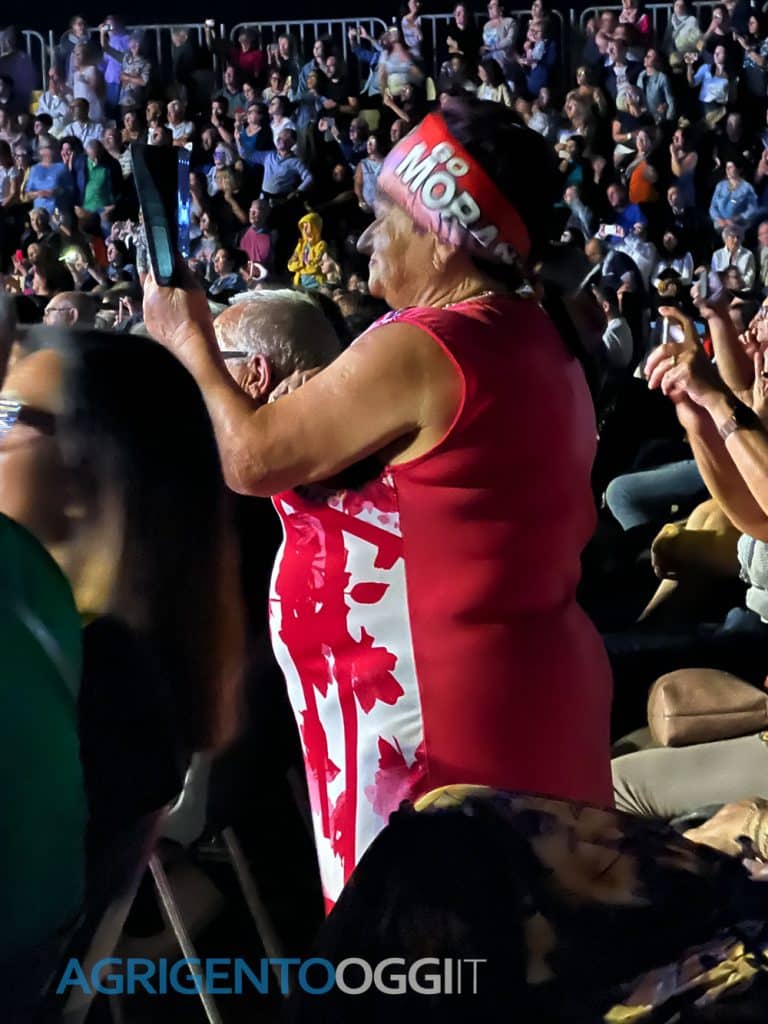 La cornice dei templi dorici di Akragas ha aggiunto un’atmosfera magica e suggestiva alla serata. Ogni canzone di Morandi ha trovato il suo spazio nel cuore degli spettatori, ma “Fatti mandare dalla mamma” è stata davvero l’apoteosi del coinvolgimento del pubblico, con tutti a cantare e ballare all’unisono.