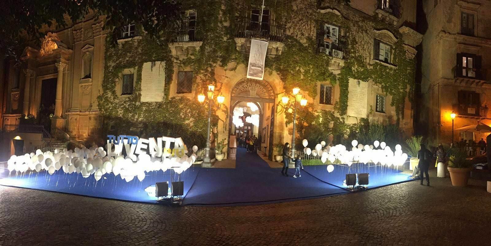 Nulla è stato lasciato al caso, per questa quarta edizione, dai momenti di spettacolo all’allestimento, per così dire, scenografico. All’ingresso di Palazzo dei Giganti, infatti, sono stati anche installati tanti palloncini bianchi su di un tappeto blu con la mega scritta “Tutto Diventa Più Leggero”(imm. copertina). L’ installazione è stata curata e donata dall’Architetto Laura Galvano e a farsi caro delle spese sono state le Onlus Samo, Samot e Sisifo. Di certo, visto il grande riscontro e la tematica affrontata di grande attualità, l’iniziativa si ripeterà per tante altre edizioni come fortemente voluto dall’Hospice di Agrigento e dal suo Direttore Alongi che è alla guida di uno dei reparti più delicati dell’ospedale dove solo amore, solidarietà e sensibilità possono permettere una serena degenza dei malati inguaribile. Ecco perchè, unitamente alla professionalità dello staff, rappresenta un’eccellenza.