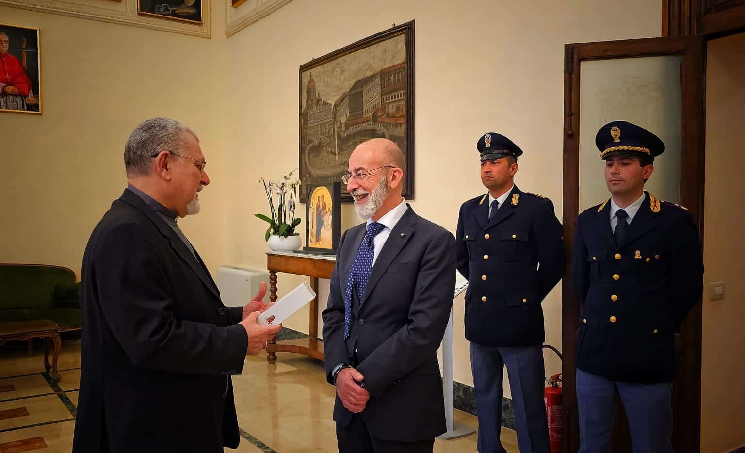 Il questore di Agrigento Tommaso Palumbo, questo pomeriggio, ha incontrato l’Arcivescovo Metropolita di Agrigento S.E. Monsignor Alessandro Damiano per la consegna dell’olio ricavato dalle olive prodotte dagli alberi del “Giardino della Memoria” di Capaci, posti vicino la stele dedicata al giudice Giovanni Falcone, alla moglie Francesca Morvillo e agli uomini della scorta Vito Schifani, Rocco Dicillo e Antonio Montinaro, tragicamente uccisi dalla mafia il 23 maggio ’92.