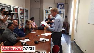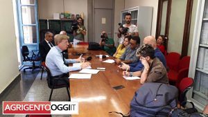 A “lezione” dal Sindaco Firetto. Così il primo cittadino con tanto di lavagna e pennarello spiega ai giornalisti le scelte contabili adottate quando era ancora sindaco di Porto Empedocle.