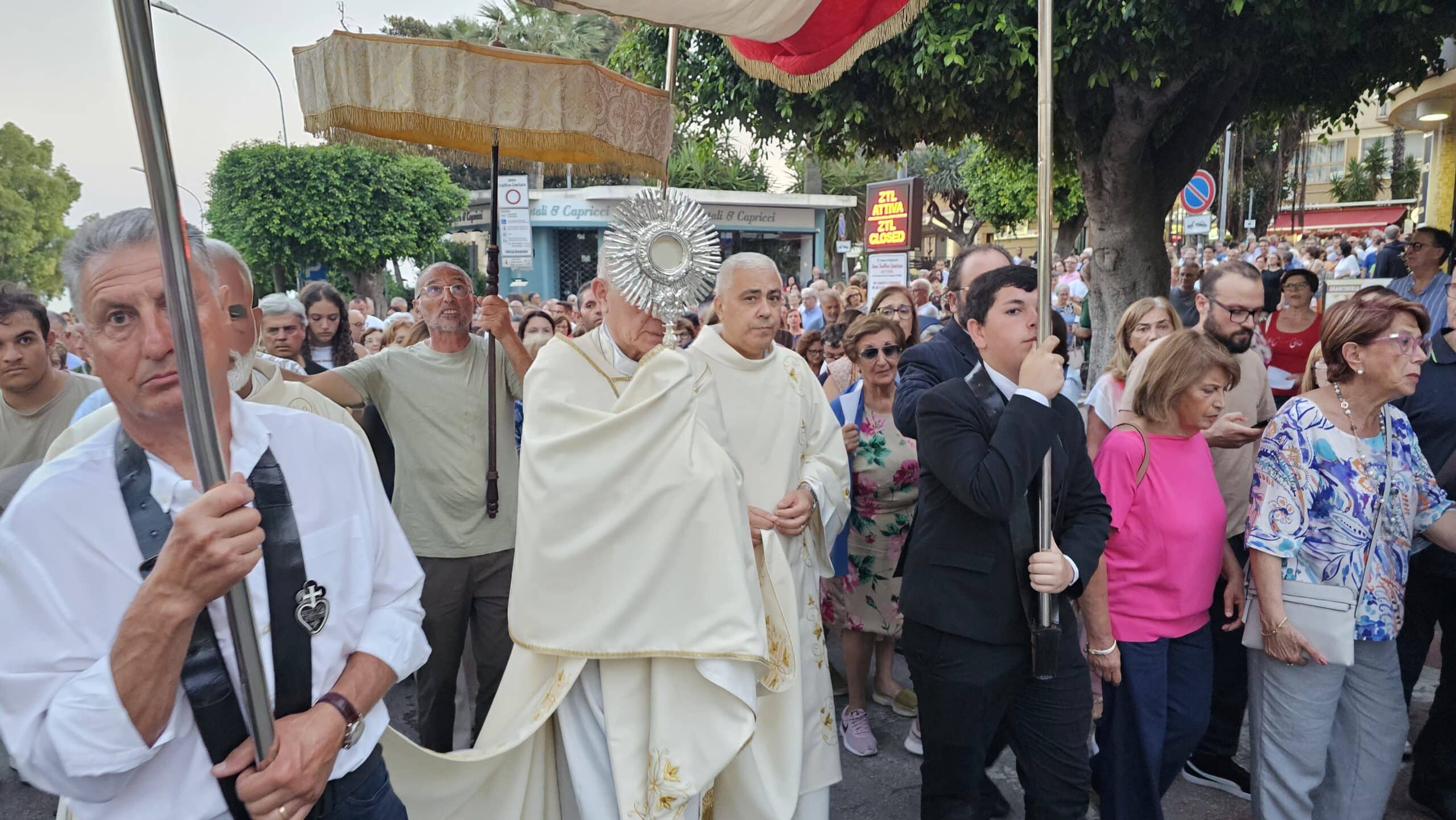 Nella Basilica Cattedrale di Agrigento, domenica pomeriggio, si è tenuta la Solennità del Corpus Domini. Alla celebrazione Eucaristica, presieduta da mons. Salvatore Muratore, vescovo emerito di Nicosia e concelebrata dai parroci della forania, ha fatto seguito la processione con il Santissimo Sacramento per le strade della città: dalla via Duomo, attraverso la via Atenea, con arrivo in piazza Stazione, dove si è tenuto un breve momento di adorazione con una preghiera e benedizione finale. Assente l’arcivescovo Alessandro Damiano, ancora in convalescenza.