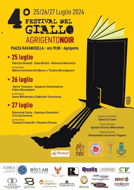 Ad Agrigento domani, giovedì 25 luglio, in piazza Ravanusella, allo “Scaro Cafè”, alle ore 19, debutta la quarta edizione del festival del giallo “Agrigento Noir”, una rassegna letteraria che promette di incantare e coinvolgere il pubblico fino al 27 luglio. E’ organizzata dalla libreria “Il Mercante di libri“ di Alessandro Accurso Tagano, con il patrocinio non oneroso del Comune di Agrigento, che collabora insieme a “Scaro Cafè”.