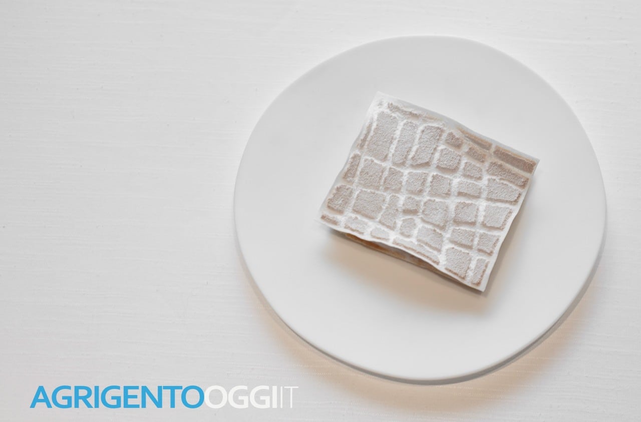 “Chi cucina – sottolinea lo chef – può attingere da un paesaggio caro e ricrearlo in un piatto. È anche questo un gesto culturale”. E così, Cretto di Burri, la monumentale opera ambientale realizzata tra il 1984 e il 1989 (e completata nel 2015) dall’artista Alberto Burri, diventa fonte di ispirazione per un dolce ricco di significato. Il Cretto è stato realizzato sui resti di Gibellina vecchia, distrutta dal terremoto che colpì la Valle del Belìce nel 1968, ed è oggi simbolo di memoria e resilienza.