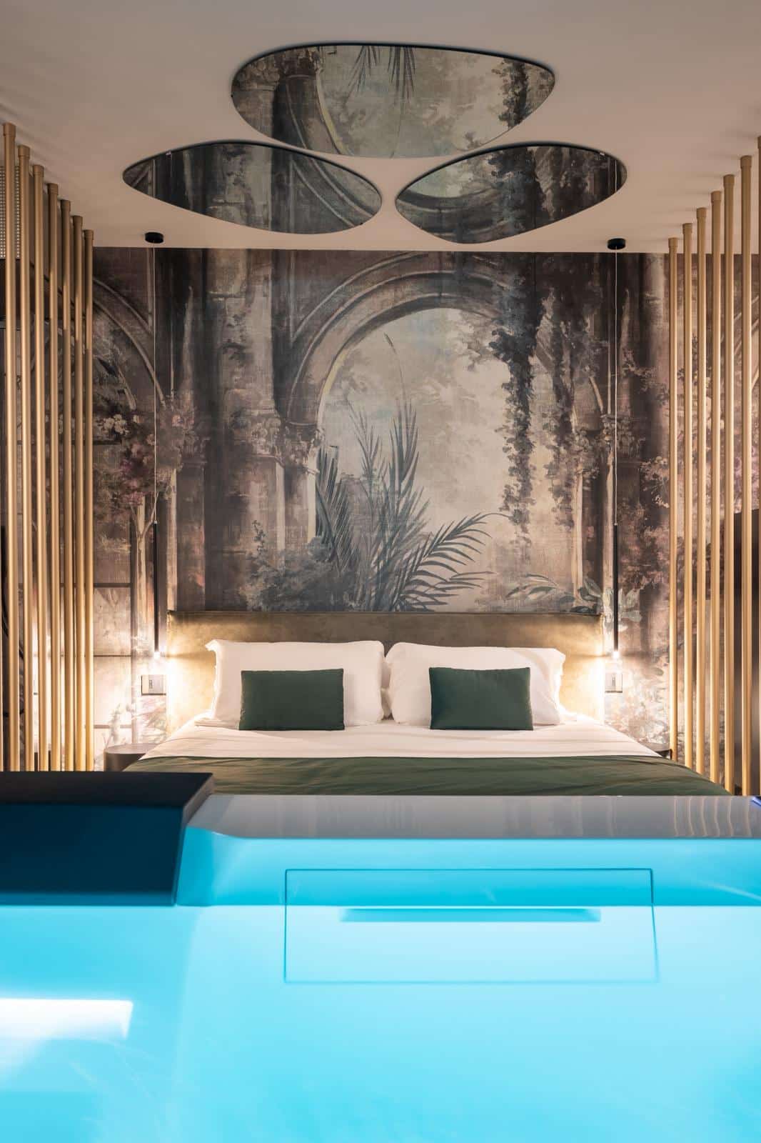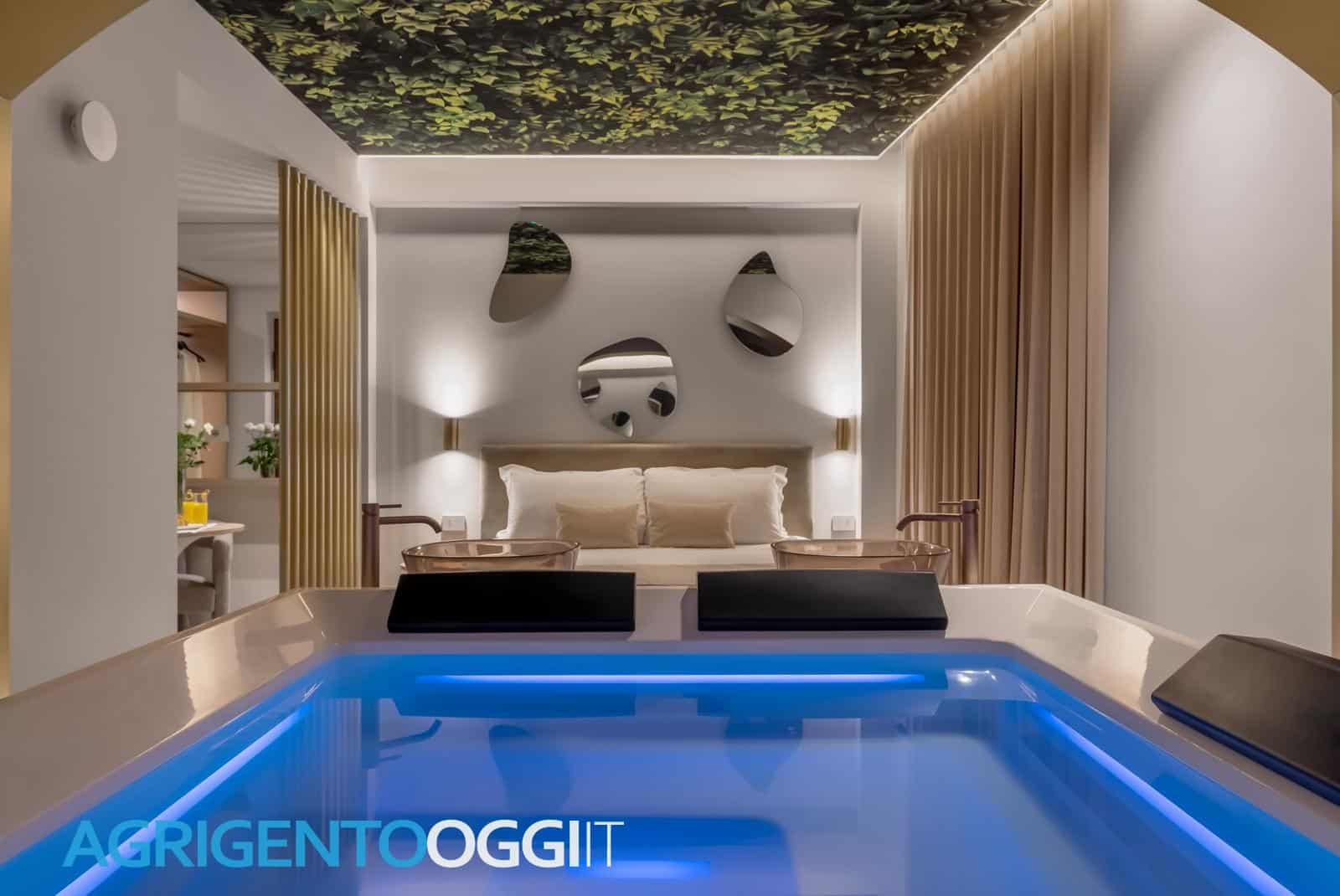 La filosofia dell’“Architettura del benessere” si traduce anche nei dettagli: vasche integrate nelle suite, pareti materiche, rivestimenti in legno, superfici in pietra naturale e soluzioni illuminotecniche che trasformano l’ambiente in esperienza sensoriale.