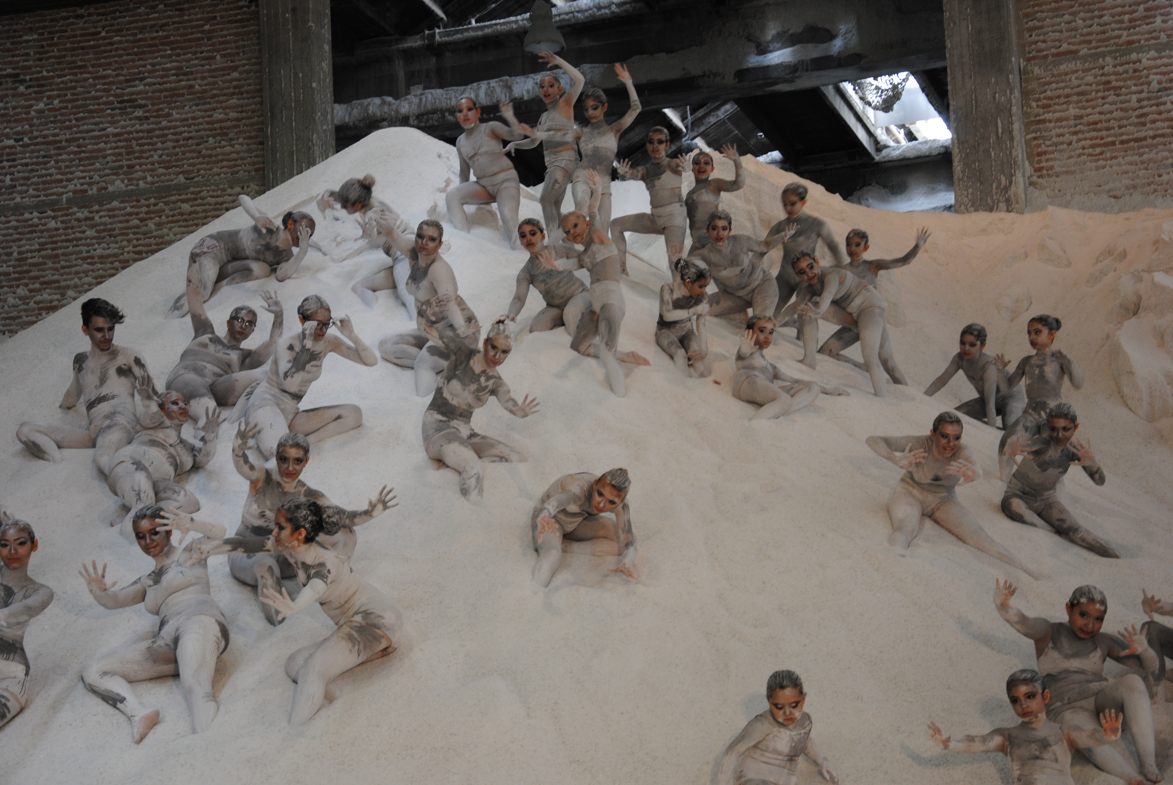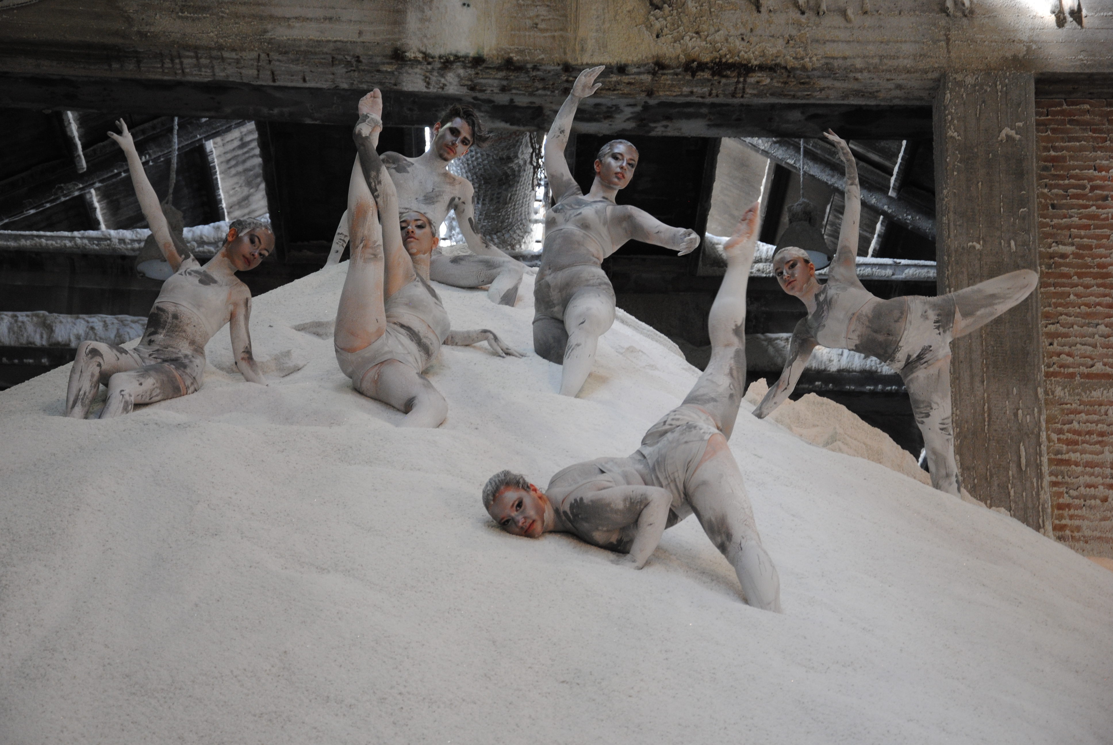 Uno dei capannoni dell’Azienda, trasformato dunque per l’occasione. Particolare cura ed attenzione da parte di Denise Grillo alle coreografie e al trucco, il tutto in sintonia con l’ambiente salino.