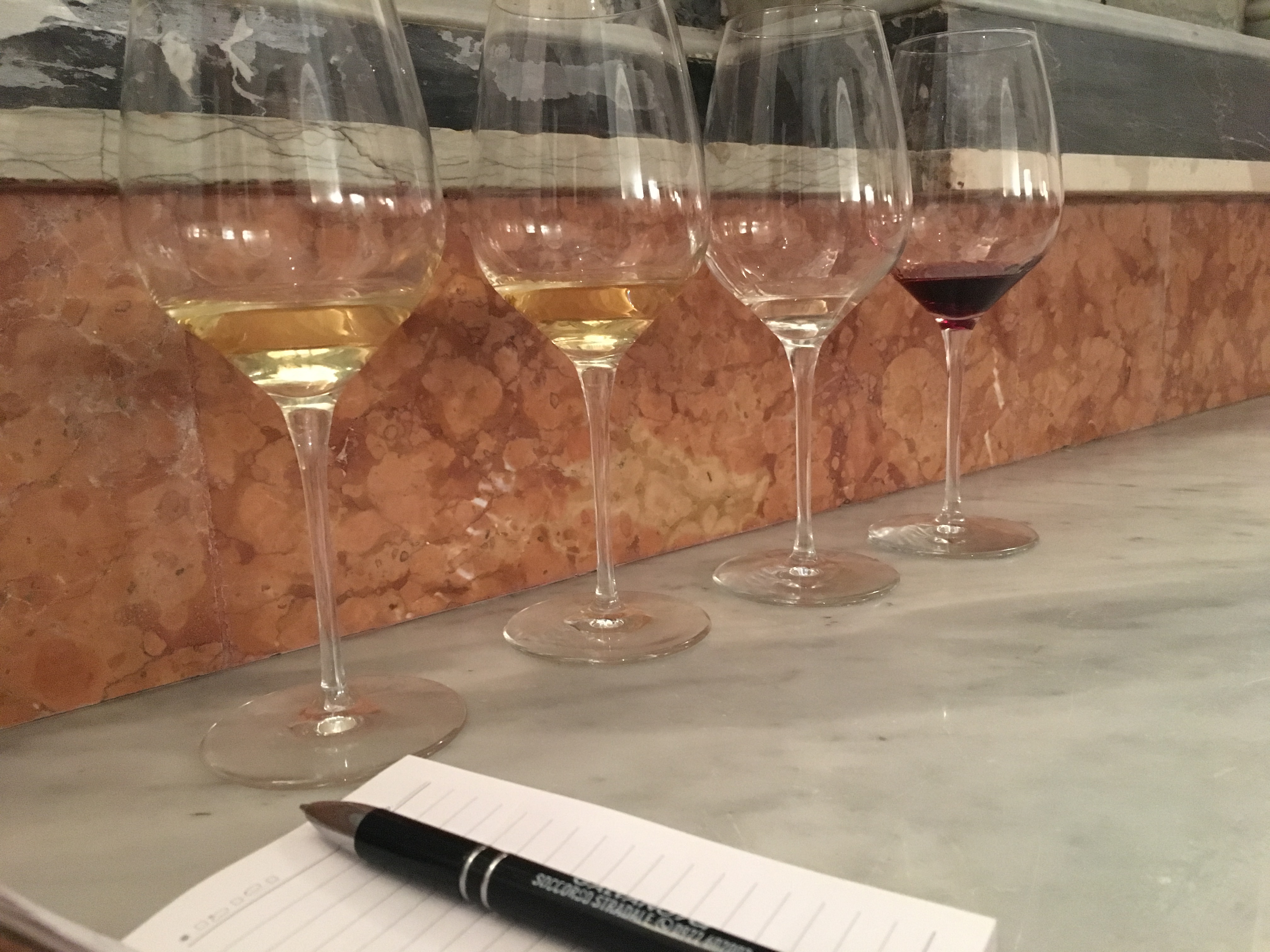 I vini in degustazione dell’azienda “Tenute Cuffaro” con le coltivazioni  dei vigneti autoctoni (Nero D’Avola, Catarratto e Inzolia) nelle peculiari terre di Fauma tra il territorio di Agrigento e Realmonte.