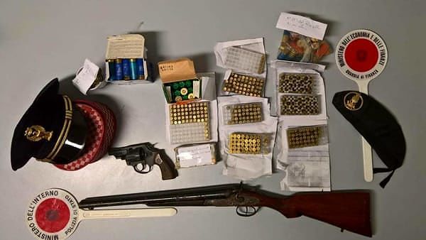 Nel medesimo locale si rinveniva, altresì, un revolver lanciarazzi di calibro imprecisato. Nel corso dell’atto di ricerca veniva rinvenuto, altresì, occultato all’interno di un sacchetto di colore bianco,  un fucile cal. 12 a canne mozze con matricola abrasa caricato con nr. 2 cartucce del medesimo calibro.