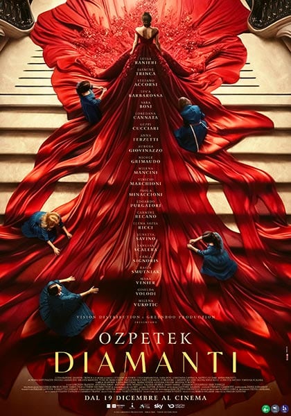 Ma un film di Ozpetek può durare 135 minuti? E’ probabile che nell’immaginare il suo ultimo film “ Diamanti” il regista abbia pensato al film della vita, abbia cercato di mettere in scena il suo capolavoro ma che sia riuscito nel suo intento e’ del tutto opinabile. Certo la presenza in scena dello stesso regista che introduce le sue attrici e poi le guida dentro la storia e’ una trovata ben riuscita, ma la sensazione è quella di essere lontani dai vertici e dalla naturalezza delle “ fate ignoranti “ o “ Saturno contro” oppure dalla narrazione avvolgente della“ finestra di fronte”. Anche qui e’ presente la solida struttura del film corale, classica del suo cinema con le tavolate e la sfida tra tante attrici a suon di bravura. Ad esempio nei corridoi della sartoria un’affermata attrice teatrale in odor di viale del tramonto si scontra con una giovane attrice di cinema (che però non ricorda il nome di Billy Wilder) in un dialogo serrato senza esclusione di colpi che poi si conclude con un brindisi ed un apprezzamento reciproco: e’ una scena classica del cinema di Ozpetek quasi a ribadire che può sempre nascere del buono anche nelle situazioni apparentemente compromesse. La sartoria delle sorelle Canova è lo scenario dove si sviluppano le storie e le vite delle donne di bottega in un luogo di lavoro che diventa una comune dove un’affermata costumista premio Oscar commissiona gli abiti di un film importante. A dirigere la sartoria troviamo Alberta, segnata da un’illusione sentimentale e per questo motivo dura ed impenetrabile, e la sorella Gabriella pervasa dal dolore profondo per la perdita di una figlia, evento tragico che l’ha resa profondamente instabile. Grande performance per Luisa Ranieri e Jasmine Trinca, entrambe ai vertici della loro carriera cinematografica. Ma tutti gli attori meritano un plauso: dagli occasionali Barbarossa e Venier, alle quasi comparse Accorsi, Marchioni e Ricci, ad una ottima Vanessa Scalera nel ruolo della costumista ed ancora Savino,Grimaudo, Smutniak,Signoris, Cucciari e Vukotic. Un’opera al femminile fatta da tante piccole storie e relative sfaccettature: dalla violenza domestica alla difficoltà economica, al dramma di un figlio alle prese con la depressione alla contestazione giovanile ed anche una certa emancipazione sessuale. E poi un bambino misterioso che fa capolino tra i costumi ( e’ forse lo stesso regista?) e un marito turco andato via troppo presto a disseminare la storia di indizi che hanno tutta l’impressione di essere autobiografici. Infine la colonna sonora con le canzoni di Mina e Giorgia a rendere più gradevoli questi diamanti natalizi. (Maurizio Arena)