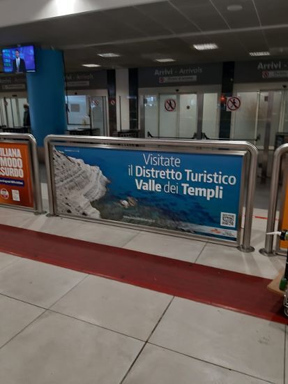 A fare da ambasciatrice del territorio distrettuale è una bellissima immagine del mare della Scala dei Turchi. Un pannello bifacciale che, sicuramente, invoglia i passeggeri in transito nell’area “Arrivi” a raggiungere questa parte della Sicilia.