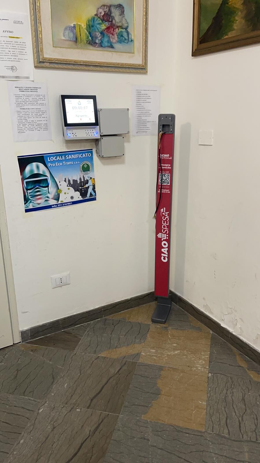 L’amministratore unico di “Ciao Spesa”, Fabio Romano, ha donato al Comune di Agrigento un termo-scanner per il monitoraggio della temperatura corporea, secondo le disposizioni e i fini previsti dalle vigenti normative in materia di contagi. Il moderno apparecchio è in grado di eseguire le rilevazioni delle temperature con grande velocità e in modo non invasivo. Basterà infatti farsi inquadrare dallo schermo per sapere in tempo reale qual è la propria temperatura corporea. L’apparecchio, inoltre, invita a tenere regolarmente la mascherina sul volto. L’apparecchio, come si vede nella foto , è già stato installato all’ingresso del Comune “e agevola notevolmente -dice il sindaco Micciché- il lavoro dei dipendenti addetti alla portineria che prima dovevano misurare manualmente la temperatura a tutti coloro che entravano al Comune.”
