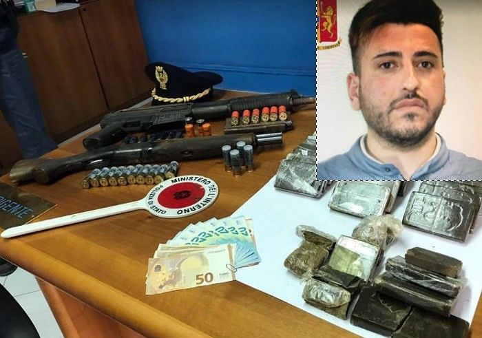 Perquisizione che dava esito positivo: sono stati rinvenuti all’interno del locale 32 panetti di hashish per un peso complessivo di 3,660kg nonché un fucile a pompa calibro 12, un fucile a canne mozze e calcio tagliato e 32 cartucce calibro 12. – illecitamente detenuti .