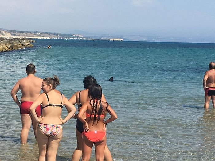 SCIACCA. Panico in spiaggia a Sciacca. Due esemplari di squalo sono stati avvistati a pochi metri dalla battigia della spiaggia della Tonnara, a Sciacca, dove si trovavano diversi bagnanti, tra cui molti bambini. L’avvistamento ha generato il fuggi fuggi generale. Una motovedetta della Guardia costiera ha subito raggiunto la zona.