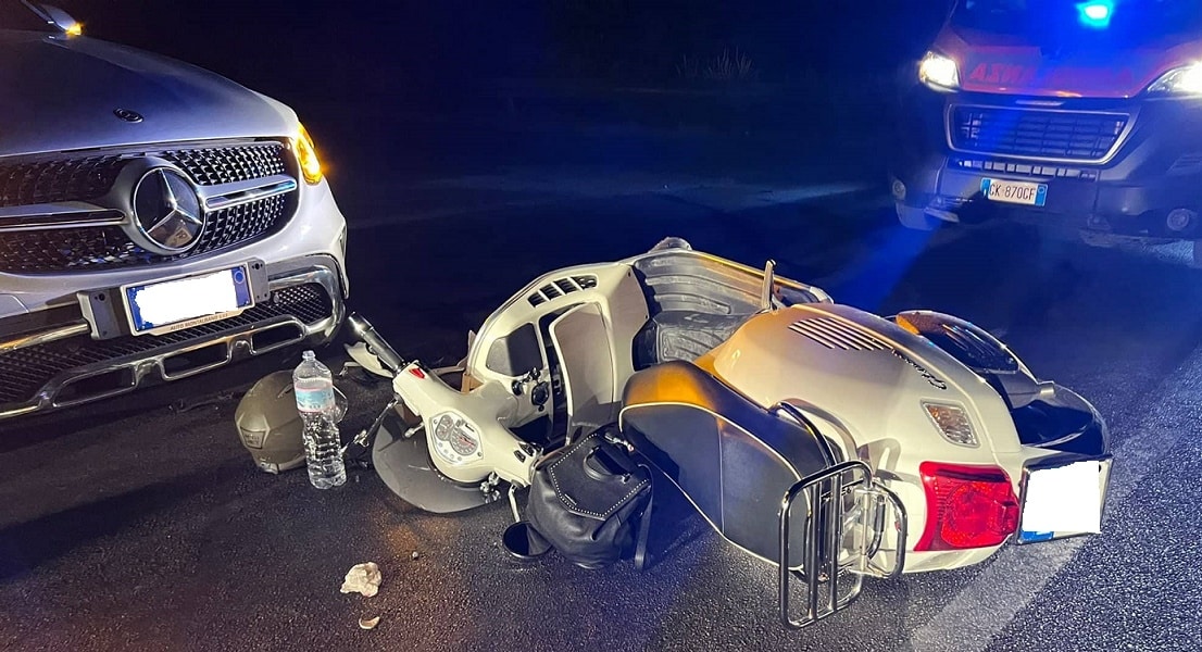 Ancora un incidente stradale al bivio della Mosella, lungo la statale 640 Agrigento – Caltanissetta. A scontrarsi sono state una Piaggio Vespa, con in sella marito e moglie, e una Mercedes Glc guidata da un giovane agrigentino. Dopo l’urto la coppia è rovinata sull’asfalto.