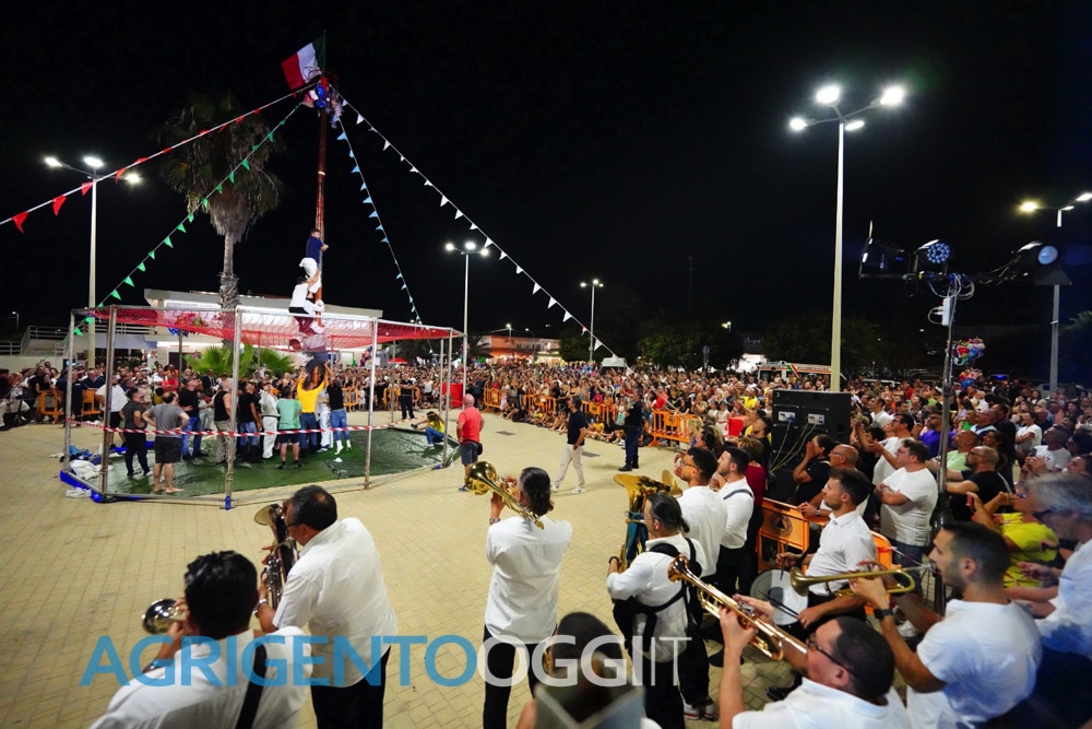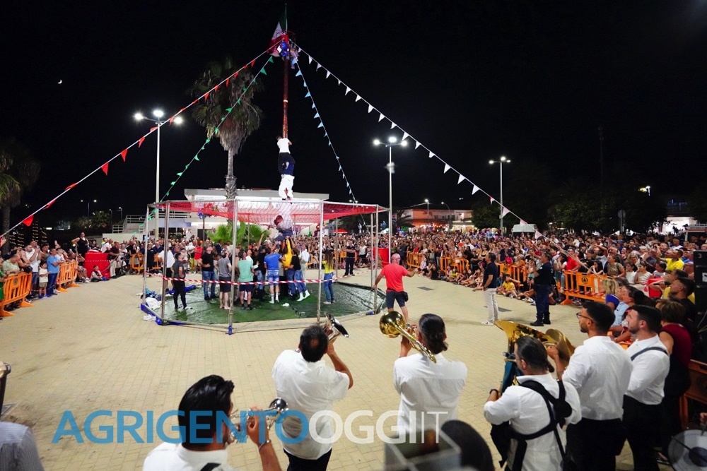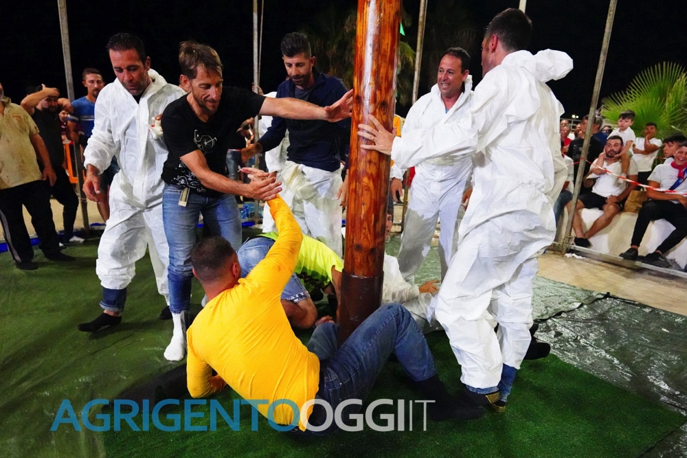 Biagio Licata, presidente dell’associazione I Tammura di Girgenti che ha organizzato l’iniziativa, ha riportato in auge la tradizione dell’albero della cuccagna, che è stata una delle novità dell’edizione 2024 della festa. Sebbene nessuna delle quattro squadre partecipanti sia riuscita a toccare la cima, tutte si sono impegnate al massimo, onorando la manifestazione e divertendosi. Un momento particolarmente toccante è stato quando le quattro squadre si sono unite per tentare insieme di raggiungere la sommità dell’antenna, creando un forte senso di comunità e collaborazione.