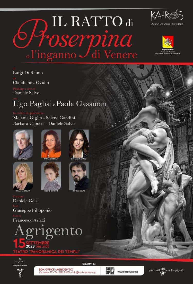 L’Associazione Culturale Kairos presenta un evento imperdibile: “Il ratto di Proserpina- l’inganno di Venere“, un’emozionante serata di letture da opere di Claudiano e Ovidio. La lettura sarà curata da Daniele Salvo e vedrà la partecipazione straordinaria di Ugo Pagliai e Paola Gassman. Questi talentuosi interpreti saranno accompagnati da un cast eccezionale composto da Melania Giglio, Selene Gandini, Barbara Capucci e Daniele Salvo.