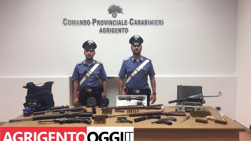 Le operazioni di perquisizione, sono state effettuate in particolare presso le abitazioni di proprietà di Amedeo Caruana, favarese di 50 anni, infermiere. In entrambi i luoghi, 20 militari dell’Arma hanno rinvenuto un ingente quantitativo di armi, munizioni, dispositivi di armamento e materiale esplodente, in ottime condizioni ed in perfetto stato di conservazione. Inoltre, in una delle due abitazioni, i carabinieri hanno scoperto un vero e proprio laboratorio finalizzato alla fabbricazione di cartucce ed all’alterazione di armi. Sono stati sequestrati: 4 pistole di diverso calibro; 3 mitragliette di calibri diversi;. 1 moschetto calibro 9; 2 carabine; 1 bomba a mano mod. 35; 1 granata da 40 mm.