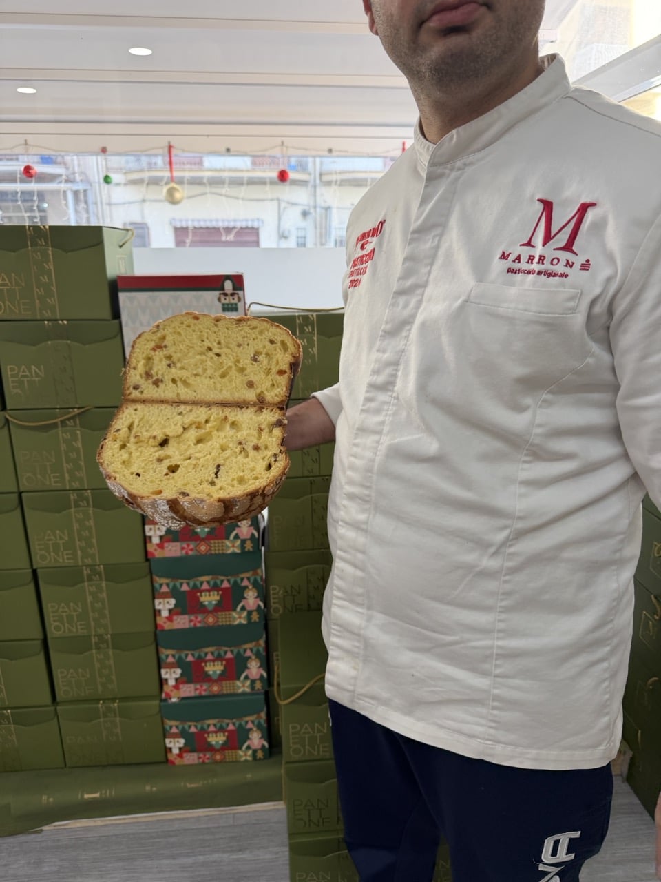 Ma il Natale, da Marrone, non è solo lievito madre e cioccolato. È anche tradizione siciliana allo stato puro. Le vetrine si riempiono di tronchetti di Natale in pasta di mandorle e pistacchio, cassate siciliane, delizie alle mandorle, agnelli farciti, ogni dolce un racconto, ogni morso un ritorno all’infanzia.
