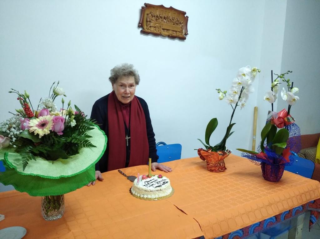 Una festa di ieri sera, molto semplice ed esclusivamente familiare, nei locali della Casa dell’ “Accoglienza Papa Giovanni”(ex-Seminario Vescovile Minore ), che si trova sulla collina Belvedere, dove si trova una delle sedi della Comunità religiosa delle Discepole del Redentore, di cui fa parte suor Grazia.