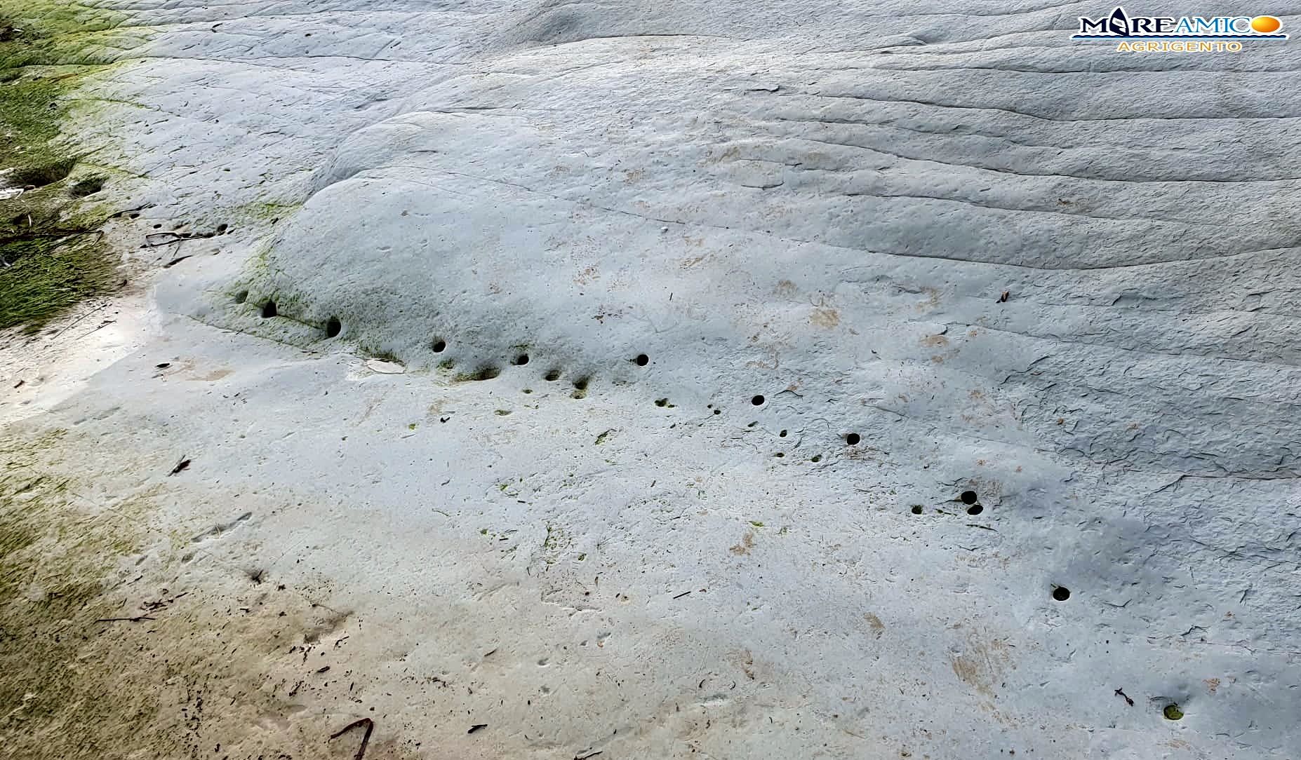 Qualcuno ha praticato dei fori, paralleli e prossimi alla linea di intersezione tra la sabba e la roccia sedimentaria, che costituisce la “gradonata” della Scala dei Turchi, proprio all’entrata del sito, annoverato tra le più belle opere d’arte naturali del mondo, candidata ad essere patrimonio dell’intera umanità.