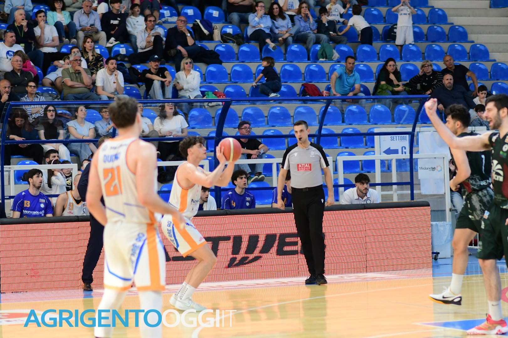 La Moncada trova continuità, corre in transizione e punisce ogni palla persa avversaria. Il sorpasso arriva con la tripla di Douvier (43-41), seguita da un’altra conclusione pesante dello stesso lungo. La difesa agrigentina diventa un muro e il primo tempo si chiude tra gli applausi sul 52-46, al termine di un secondo quarto vinto 31-18.