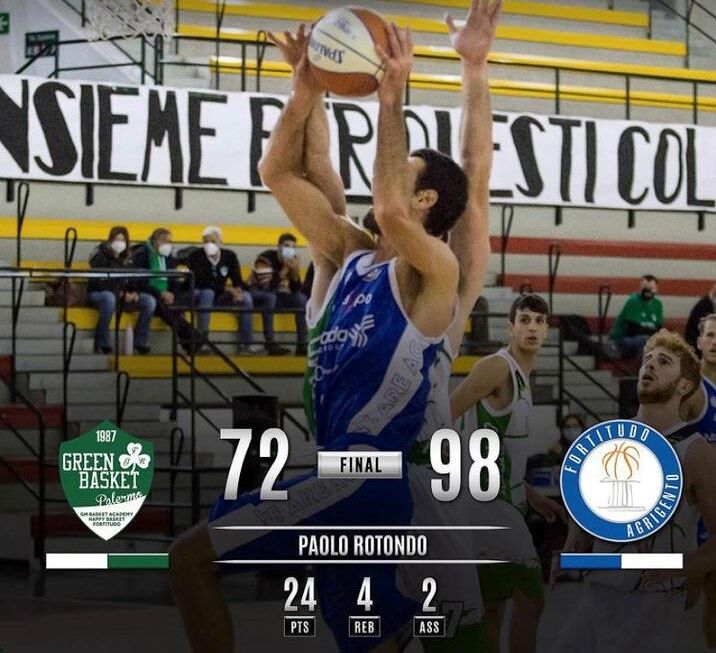 Palermo, nel secondo periodo, torna sul parquet con un’altra faccia. Guerra e Lombardo provano a contrastare il gioco di Grande e Saccaggi. A riposo lungo, però, è la squadra di Catalani a chiude in vantaggio. Dal terzo quarto in poi salgono in cattedra i “grandi” della Fortitudo Agrigento. Rotondo e Veronesi sono incontenibili, Grande in regia sbaglia poco e niente e Catalani regala l’esordio del giovanissimo Mayer. Agrigento vince e convince, i biancazzurri hanno imposto ritmo e trame di gioco contro una Green basket messa bene in campo. Super prova di Paolo Rotondo che chiude con 24 punti, bene anche Veronesi e Saccaggi. Agrigento ha “brindato” l’esordio con una vittoria da incorniciare.  Buona la prima anche per coach Catalani
