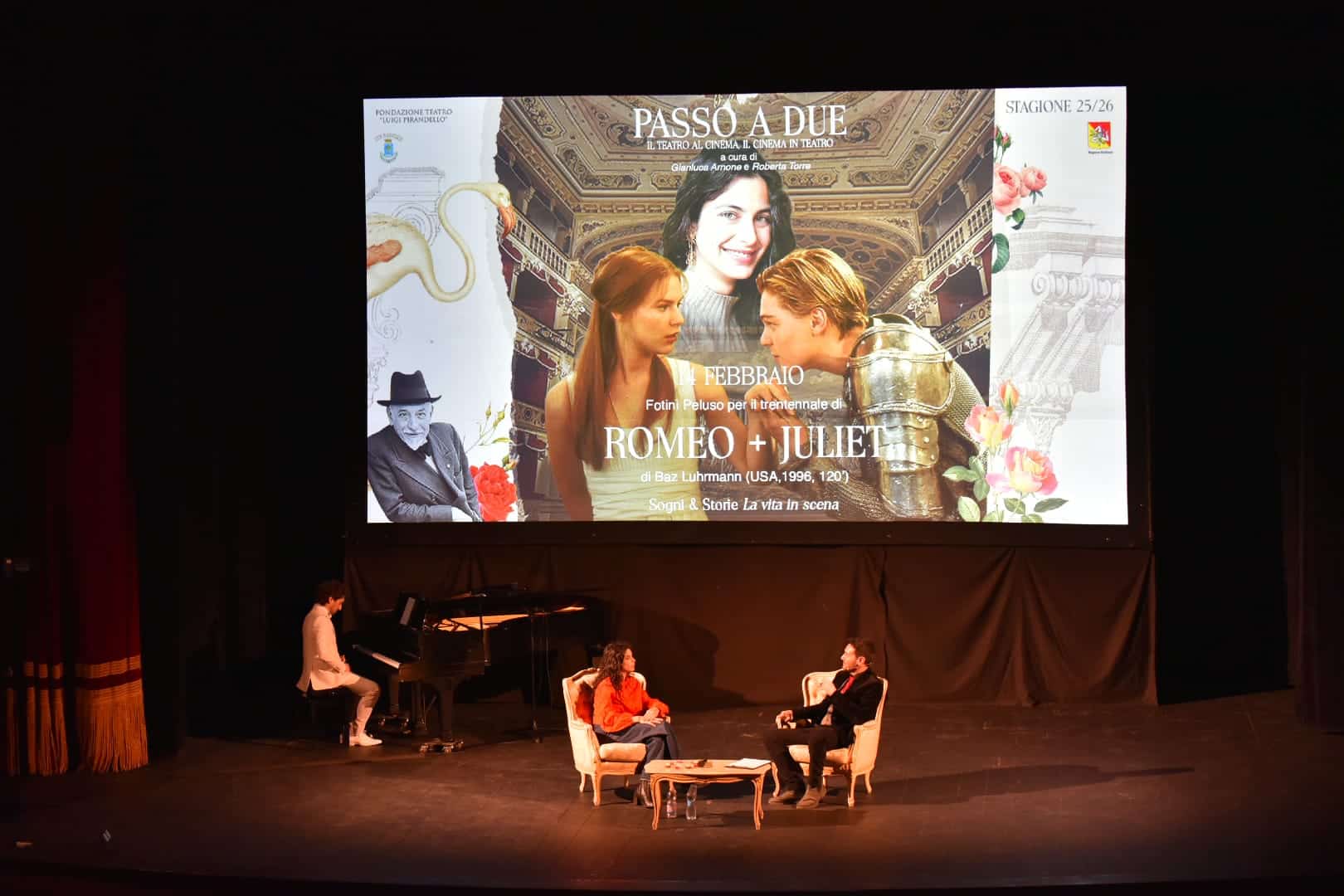 Un palco che chiama, una platea che ascolta, un’emozione che attraversa la sala. Al Teatro Pirandello il secondo appuntamento di PASSO A DUE – Il Teatro al Cinema, il Cinema in Teatro, curato da Gianluca Arnone e Roberta Torre, ha trasformato il giorno di San Valentino in un incontro tra cinema, memoria e sentimento.