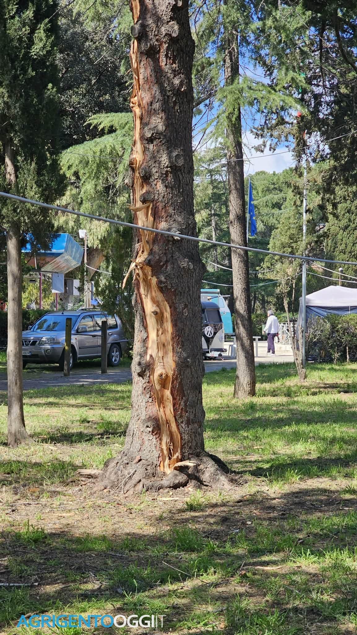 Un fulmine ha colpito un albero, scagliando le schegge per circa cinquanta metri all’interno della villa Bonfiglio al Viale della Vittoria ad Agrigento. E’ successo martedì pomeriggio quando sulla città si è abbattuto un forte temporale tant’è che è slittata di 24 ore anche l’accensione del Tripode dell’Amicizia.