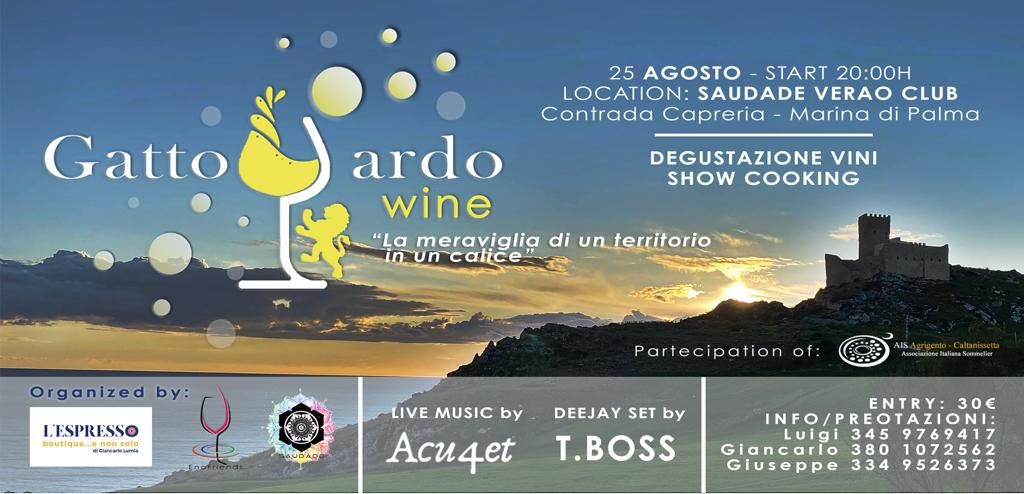 Un’esperienza  per conoscere le tipicità del territorio immersi nella storia del Gattopardo, tra assaggi di vini  e show cooking. Il tutto valorizzato attraverso caratteristici contrasti o assonanze di gusto, in abbinamento ai vini. La data da segnare in agenda è il prossimo 25 agosto, alle 20, al Saudate Verao club, a Marina di Palma. L’evento, alla sua prima edizione, si chiama “Gattopardo Wine. La meraviglia di un territorio in un calice”, ed è organizzato dall’associazione Enofriends, presieduta da Mario Puzzo, vice presidente Luigi Gangarossa e composta da Santoro Castronovo, Lillo Farruggio, Giancarlo Lumia e Calogero Vassallo. “L’iniziativa- spiega Gangarossa- nasce per dare risalto ad un territorio altamente vocato con una storia plurimillenaria dove si coltivata la vite e praticava la pastorizia. Speriamo di potere fare altre edizioni anche con master class. Il nero d’avola nella zona di Palma veniva coltivata ai tempi dei greci.” Una trentina le cantine partecipanti tutte siciliane. Non mancherà l’associazione Sommelier di Agrigento e Caltanissetta e la musica.
