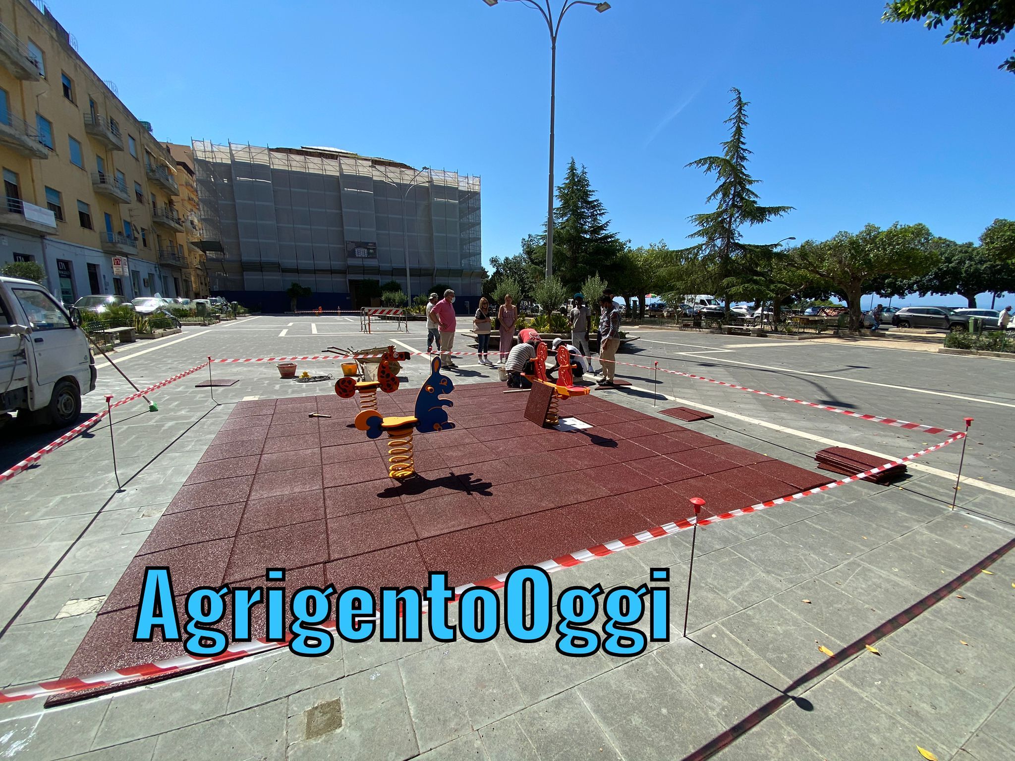 Nuovi giochi per bambini in piazza Cavour. Un piano del Comune di Agrigento che ha previsto l’installazione di cinque dondoli. Le giostre erano state posizionate, momentaneamente, senza un tappeto ed ecco che si era scatenata la polemica con la preoccupazione di genitori e nonni che qualcuno si potesse fare male.  Questa mattina, mercoledì 16 giugno, il comune di Agrigento ha provveduto ad installare il tappeto antiurto che, comunque, era già stato già previsto e ordinato. “Questa è Agrigento –aveva commentato il sindaco Miccichè – ogni cosa che viene fatta c’è una discussione. Devo dire che in tanti che frequentano abitualmente la piazza mi avevano chiesto l’istallazione dei giochi”. Anche il vicepresidente del Codacons Giuseppe Di Rosa aveva fatto notare che sul suolo della piazza mancava un’adeguata pavimentazione per proteggere i bambini dagli urti. “Tale normativa – aveva detto Di Rosa – indica che l’utilizzo di mattonelle in gomma antiurto, tappeti antiurto e pavimenti antitrauma sono obbligatorie in tutti i luoghi pubblici destinati ai bambini come ad esempio: parchi giochi esterni; aree gioco interne a scuole; ludoteche”.