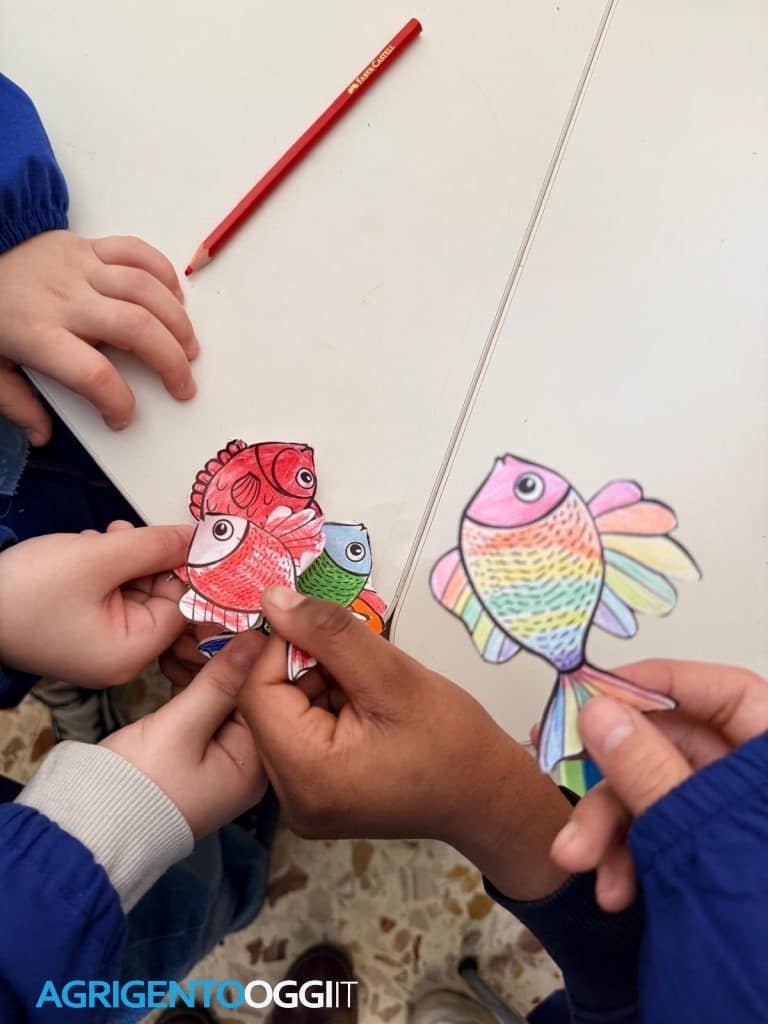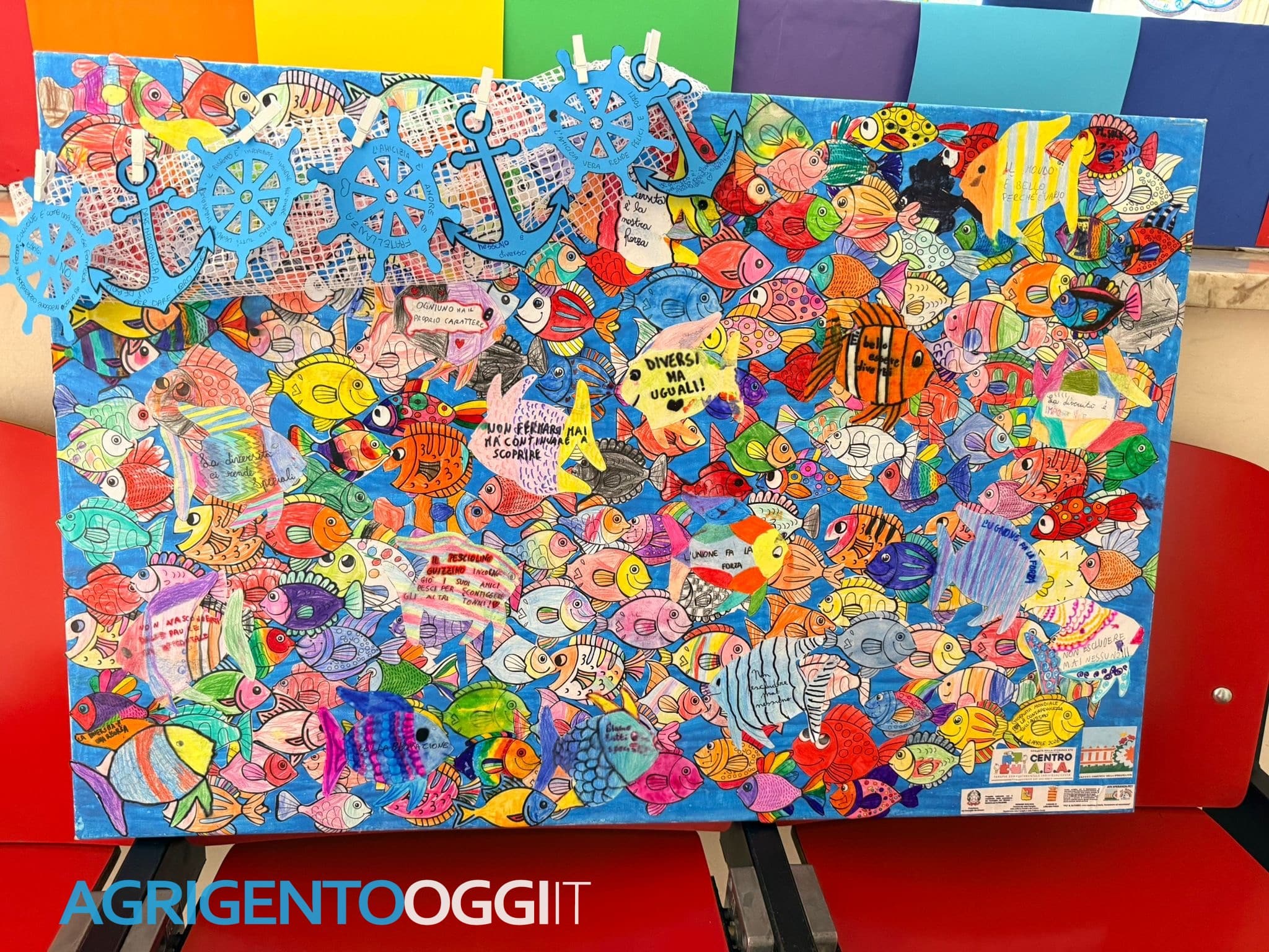 I più piccoli, dalla scuola dell’infanzia alle classi prime della primaria, hanno dato vita al “popolamento” del mare: con pennelli e colori hanno creato una moltitudine di pesciolini variopinti, decorando sagome precedentemente ritagliate dai ragazzi della Comunità della Speranza e del Centro A.B.A. convenzionato. Le creazioni individuali sono poi confluite in una grande tela collettiva, trasformandosi in un mosaico simbolo di accoglienza e partecipazione.
