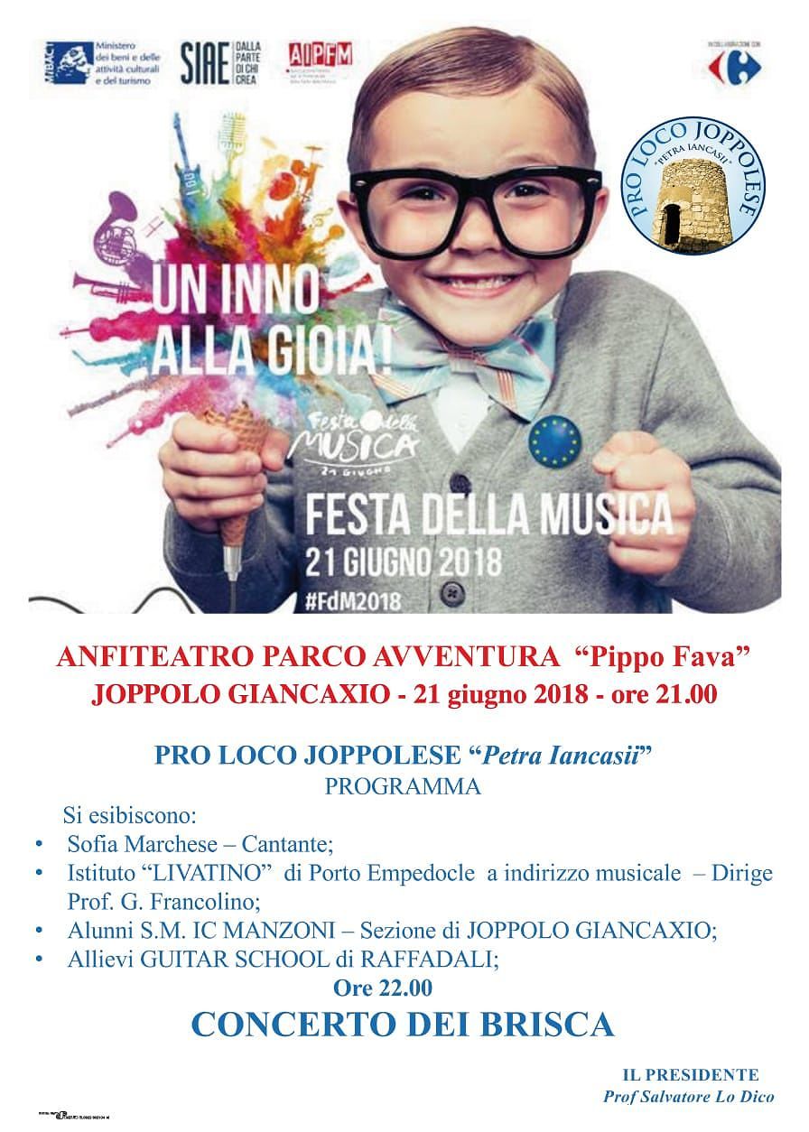 Si svolgerà giovedì 21 giugno 2018 la prima edizione della Festa della Musica a Joppolo Giancaxio.