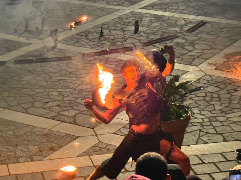 La musica ha accompagnato gli eventi di sabato, con l’arpista Adriana Nicolosi che si è esibita davanti a centinaia di persone nel Giardino del vescovo del Museo diocesano e Arianna Vassallo che ha allietato i presenti con le letture al museo di Santo Spirito accompagnata dalla violinista Giusy D’Anna. La seconda parte dell’evento ha riempito la scalinata della cattedrale, dove il “poeta del fuoco” Natale Dimora, ha fatto vivere momenti di puro spettacolo con i suoi giochi con il fuoco.